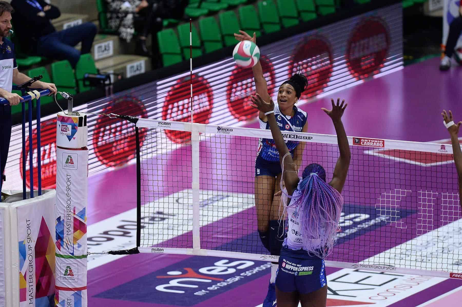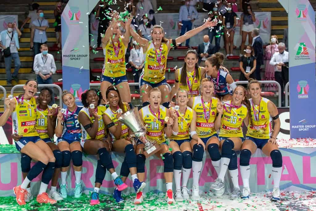 IMOCO VOLLEY CONEGLIANO: Fahr 9, Egonu 16, Hill 13, Butigan 10, Wolosz 4, Omoruyi 10, De Gennaro (L), Eckl. Non entrate: Sylla, Gicquel, Gennari, Adams, Caravello, Folie (L). All. Santarelli. IL BISONTE FIRENZE: Cambi 1, Enweonwu 8, Kone 2, Nwakalor 11, Van Gestel 5, Alberti 6, Venturi (L), Lazic 1, Panetoni, Hashimoto. Non entrate: Acciarri, Guerra, Lapini (L), Belien. All. Mencarelli. ARBITRI: Rapisarda, Papadopol. NOTE – Durata set: 23′, 23′, 22′; Tot: 68′.