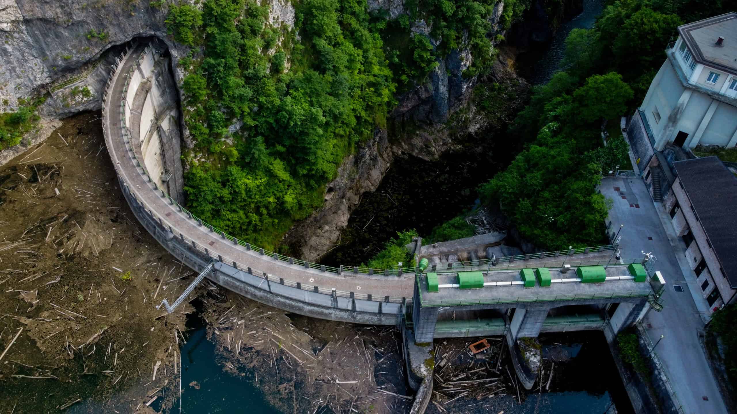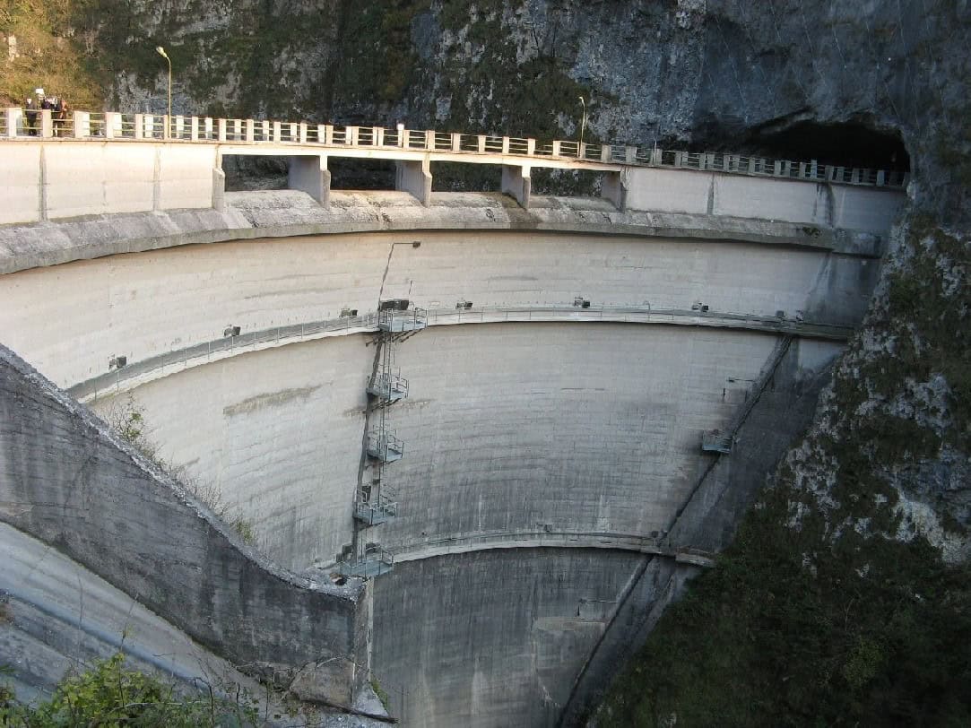 Si aprono impressionanti vedute sul profondo canyon del Cismon e, con una galleria (illuminata), sbuchiamo direttamente sopra la grande diga, che fa da ponte stradale sulla forra.