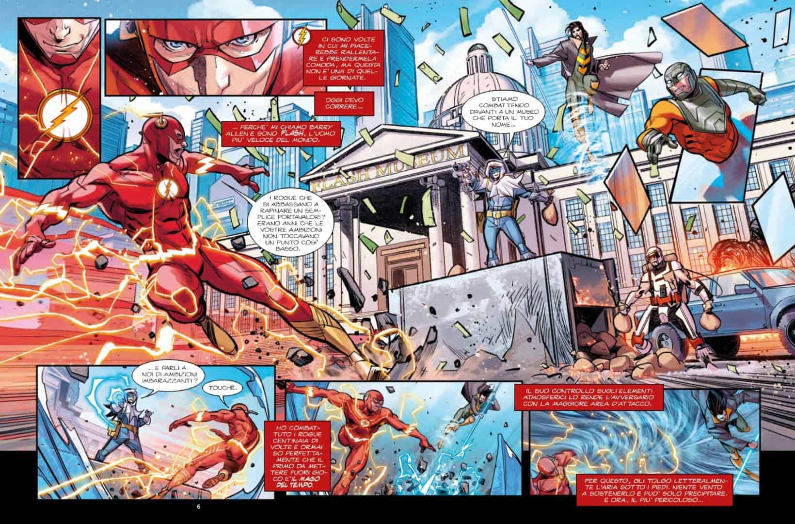 Allo stesso modo, Gianfelice interpreta Flash magnificamente. La velocità di Barry viene impressa con uno sviluppo grafico principalmente orizzontale, in cui il tratto di Gianfelice diventa più ricco e dinamico per rispecchiare la Velocità del personaggio. La stessa composizione delle tavole muta, adeguandosi a un flusso narrativo più rapido, che incorpora scorci e vignette slegati da una rigida imposizione della gabbia per adeguarsi alla familiare rapidità di Flash.