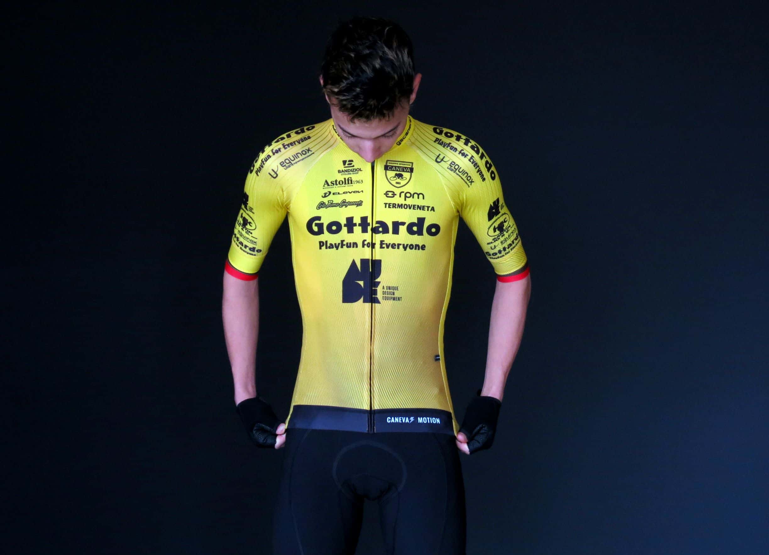Totalmente rinnovata. Così è la nuova divisa da gara del Gottardo Giochi Caneva firmata RPM Cycling presentata oggi. Come nel 2020 i completi sono realizzati con tessuti riciclati eco-compatibili.