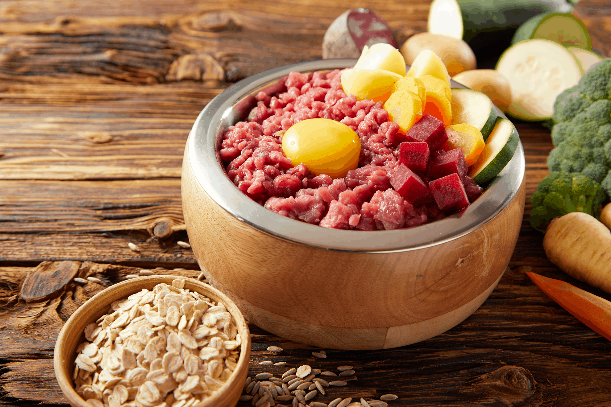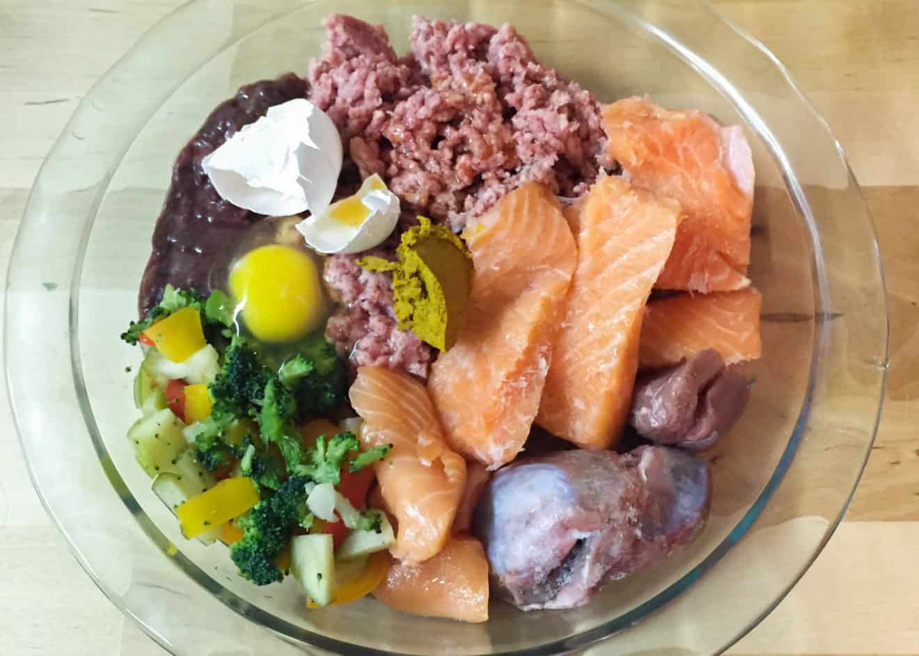 La dieta BARF è composta dall’80-90% di prodotti di origine animale (carne, ossa/cartilagini, frattaglie/organi interni, trippa) e dal 10-20% di prodotti vegetali.