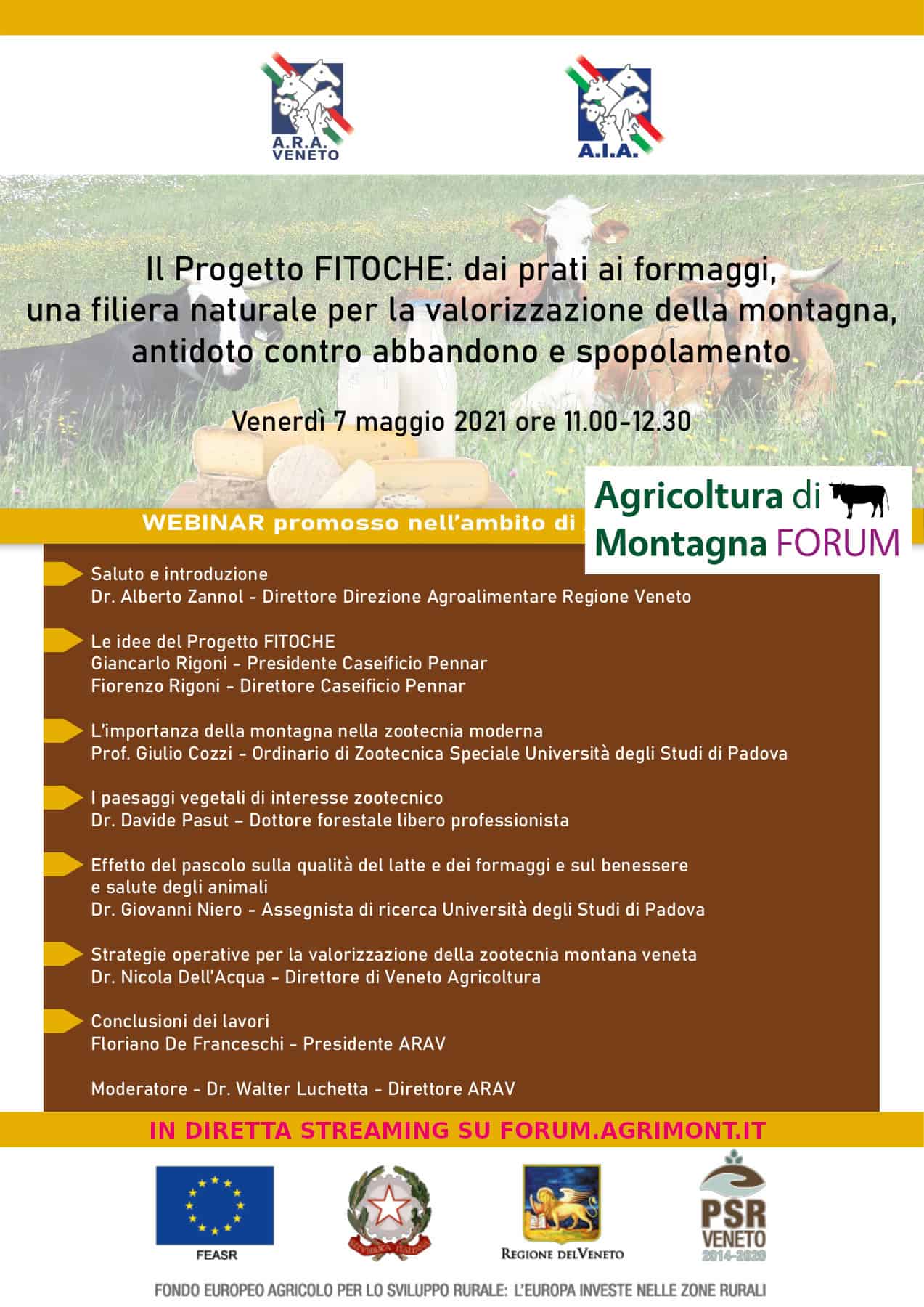 Con queste parole Alberto Zannol, Direttore della Direzione Agroalimentare della Regione Veneto ha aperto venerdì mattina il webinar promosso da ARAV. Nell’ambito del Forum dell’Agricoltura di Montagna realizzato da Longarone Fiere Dolomiti, sul tema “Il Progetto Fitoche: dai prati ai formaggi, una filiera naturale per la valorizzazione della montagna, antidoto contro abbandono e spopolamento”, moderato dal direttore di Arav, Walter Luchetta.
