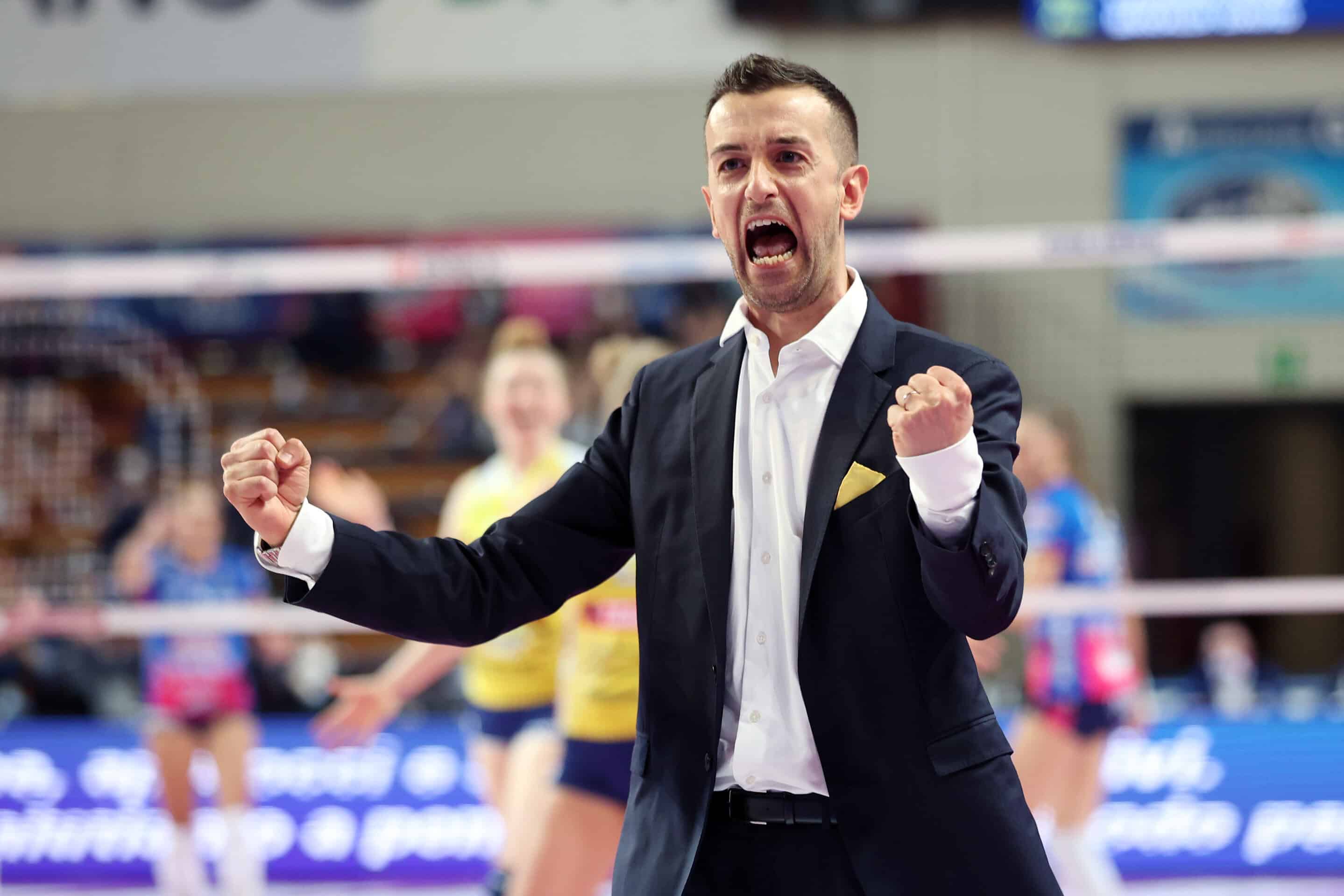 Ha vinto 81 delle 82 partite disputate. Anche il nome di Daniele Santarelli entra, a pieno diritto, nel club dei grandi allenatori. A dispetto della giovane età (40 anni tra qualche settimana) il coach folignate ha già riempito la sua bacheca personale, guidando in prima persona l’Imoco a 10 dei suoi 13 successi e portandola 15 volte a giocarsi titoli e coppe; se a questo aggiungiamo quanto aveva già vinto come assistente di Davide Mazzanti a Casalmaggiore prima e a Conegliano poi, il quadro è davvero esaltante.