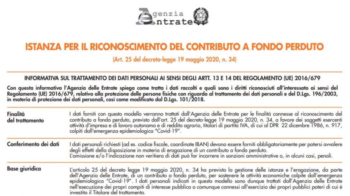 La richiesta del contributo a fondo perduto per imprese e professionisti