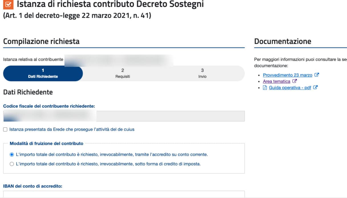 Avvertenza: L’Iban da indicare nell’istanza deve individuare un conto corrente intestato o cointestato al soggetto che richiede il contributo, identificato tramite il relativo codice fiscale.
