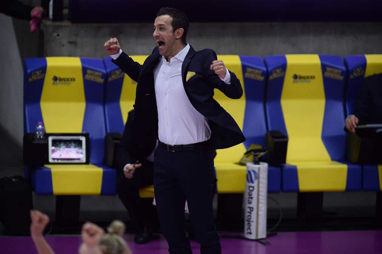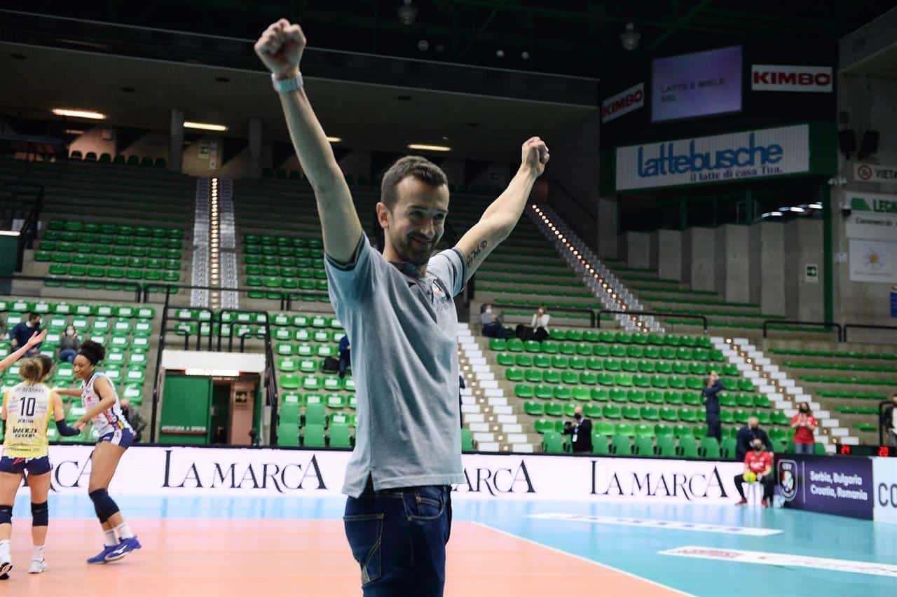 Daniele Santarelli continuerà anche per la stagione 2021/22 ad essere il coach dell’Imoco Volley. Una conferma annunciata per il 39enne coach di Foligno (l’8 giugno festeggerà i 40) che quindi sarà per il quinto anno sulla panchina delle Pantere come capo allenatore, dopo essere stato anche assistente nel biennio 2015/17 con coach Mazzanti. Dal suo avvento sulla panchina gialloblù, il suo primo incarico da ‘primo” su una panchina di Serie A, per il tecnico umbro un ‘cursus honorum’ incredibile: 180 partite da capo allenatore (sulle 359 totali dell’Imoco, praticamente metà) con 158 vittorie e 22 sconfitte, una soltanto nelle ultime due stagioni, con una formidabile striscia vincente ancora aperta di 64 partite.