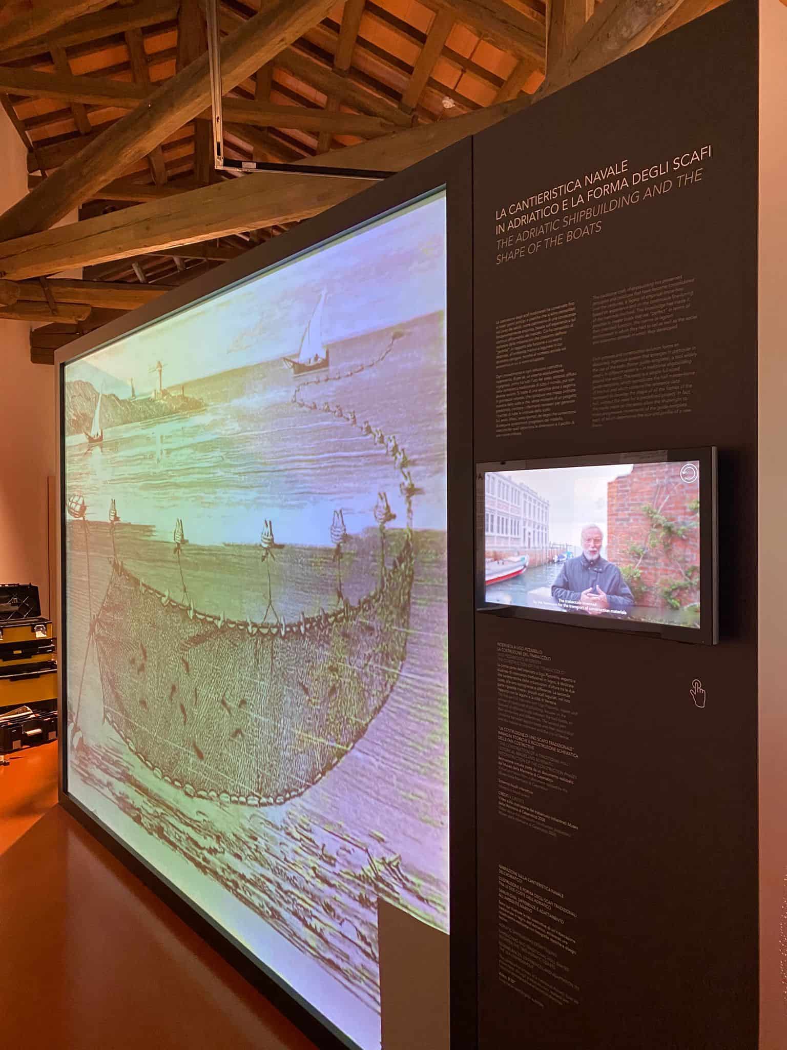 Le postazioni multimediali dei due progetti sono frutto del lavoro di un team di assegnisti di ricerca multidisciplinare, che ha coinvolto archeologi ed esperti di marineria come Stefano Medas ed Elisa Costa, ma anche competenze nell’ambito degli allestimenti digitali e multimediali, come Cristina Barbiani e Paola Perozzo. Si tratta di postazioni interattive e immersive che, con l’ausilio di monitor, retroproiezioni e sistemi di realtà aumentata, consentono ai visitatori di fruire in modo semplice e intuitivo di documenti video, interviste e mappe tematiche. Attraverso cui poter viaggiare nel mondo del patrimonio nautico veneziano e del patrimonio archeologico sommerso dell’Adriatico.