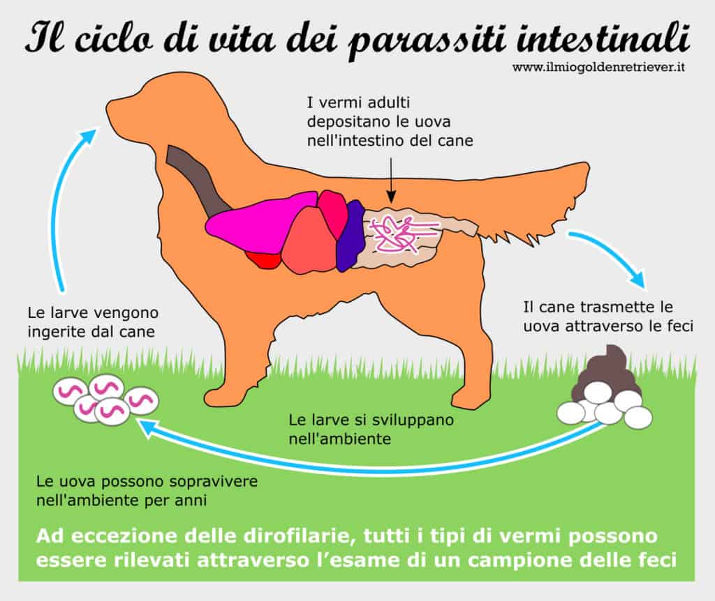 Parlando di parassiti intestinali non ha senso agire “in prevenzione” sterminando il tuo cane senza che ci siano veramente parassiti che stanno provocando dei disturbi. Più sotto parleremo di prevenzione,