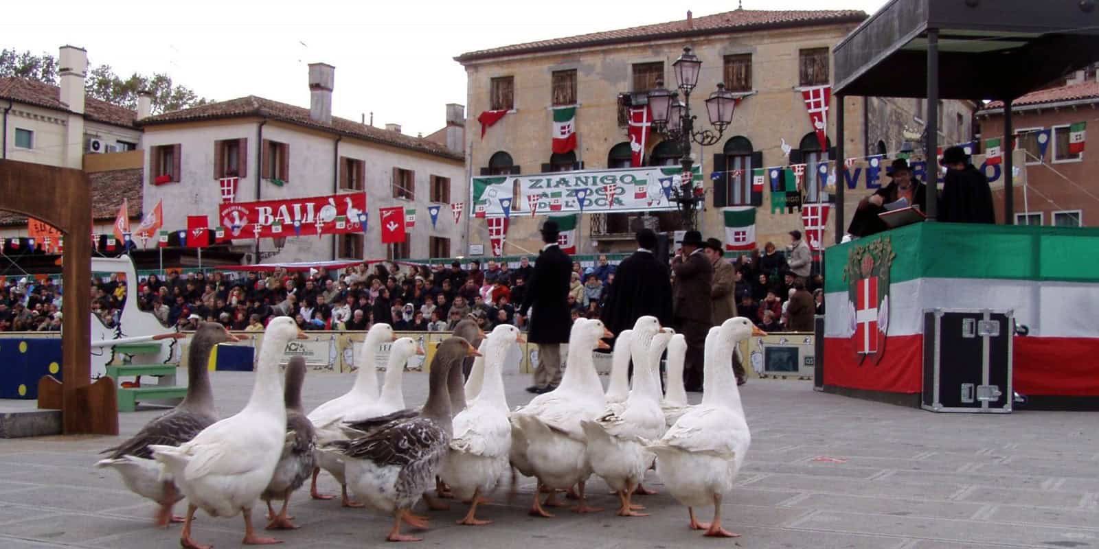 Dopo la pausa forzata per Covid 19, quest’anno Mirano si mette in vetrina con l’oca. E guarda caso il pennuto è l’alfiere ideale sotto ogni punto di vista per questa ricorrenza, con una fiera da decine di migliaia di visitatori. Oca da guardare, oca da mangiare, oca per divertire. Tradizione e divertimento si fondono nel week-end di San Martino, a novembre e la cittadina si trasforma per accogliere uno degli appuntamenti più interessanti del Veneto, la Fiera de l’Oca, con il celebre Zogo de l’Oca in Piazza Martiri.
