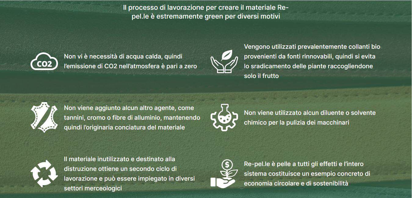 “Attraverso il nostro progetto utilizzando scarti e rimanenze di pelle esce la REPELLE, materiale composto tutto di pelle il quale dopo essere stato sottoposto a determinati test , ha caratteristiche per le quali permettono di essere utilizzato per la produzione di scarpe, borse ed altro ancora”.