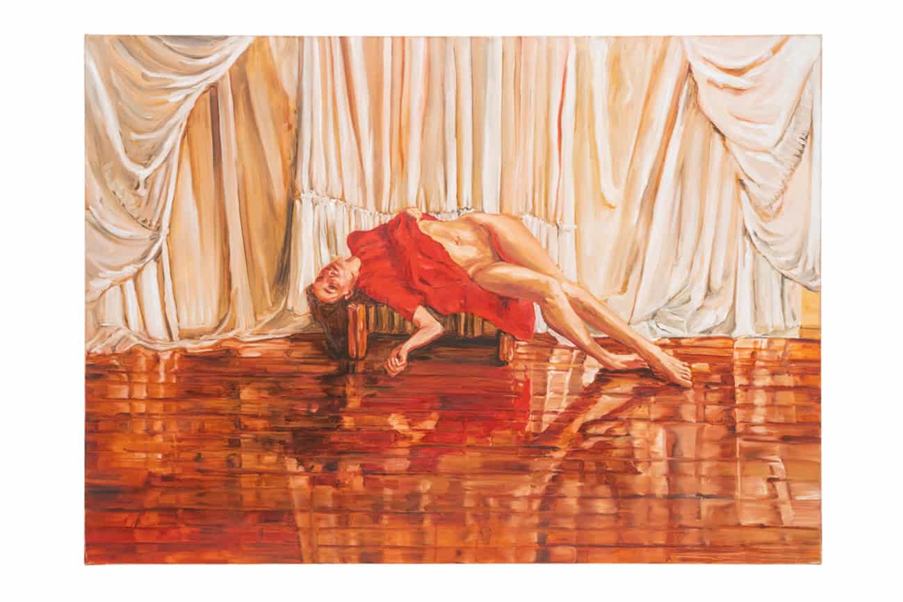 Tra tendaggi e porte socchiuse, da cui filtra appena la luce, o in interni sontuosi e claustrofobici, sono i gesti, gli spasmi, le cinghie tenute tra i denti a turbarci. Oppure case divorate dalle fiamme, come avviene solo negli incubi; volti straniati, o assenza di volto, in torsi dalla tensione acuita. Giovani che si spogliano, con una pudicizia antica e sapiente; corpi disperatamente posseduti da un maleficio lontano.