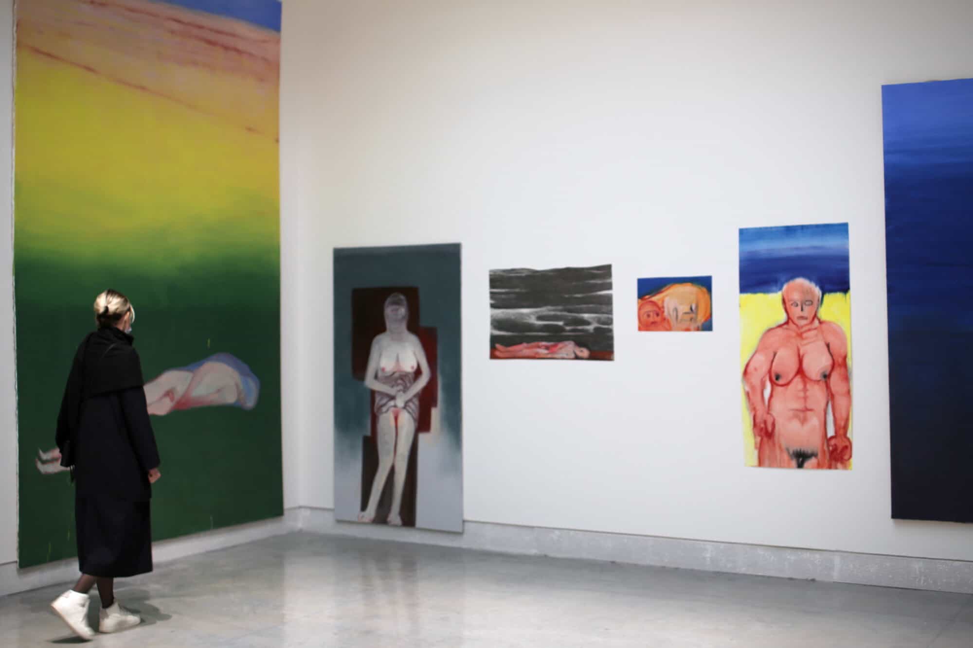 Un’altra artista che non consente distrazioni e colpisce direttamente al cuore è la svizzera Miriam Cahn, classe 1949. Il femminismo di Cahn trasuda dalla sua opera che restituisce paesaggi da incubo in cui si consumano atti di violenza. Il tema del corpo inserito in dinamiche abusive o di guerra è al centro della riflessione dell’artista elvetica. Alla Biennale Arte 2022, nel padiglione centrale ha portato una serie di opere senza retorica: “Unser Suden” un olio su tela del 2021 in cui due figure umane trascendono il paesaggio svanendo in esso. Sembrano galleggiare in uno spazio sfuocato che, a mano a mano, sembra perdere i contorni.