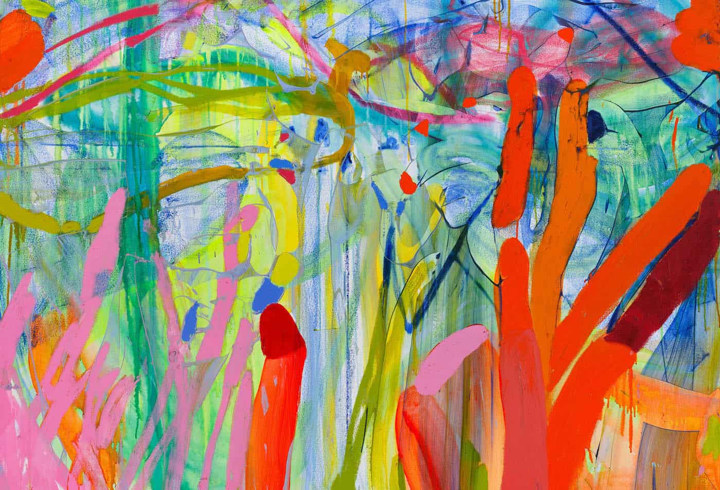Le forme si susseguono come aggrovigliate, ovali, linee segni, cerchi, una semantica che sembra essere l’alfabeto dell’artista, un racconto compiuto su tela in cui emozioni, ricordi d’infanzia, e quell’atteggiamento unico e meraviglioso attinto dalla cultura giapponese che è lo shoshin (la mente del novizio), ne decrittano l’intenzione. Una capacità innata che consente a Jadé di rendere gli oggetti della quotidianità pressoché irriconoscibili. Nel suo mondo di colori e forme tutto assume un aspetto equilibrato, seppur apparentemente caotico.