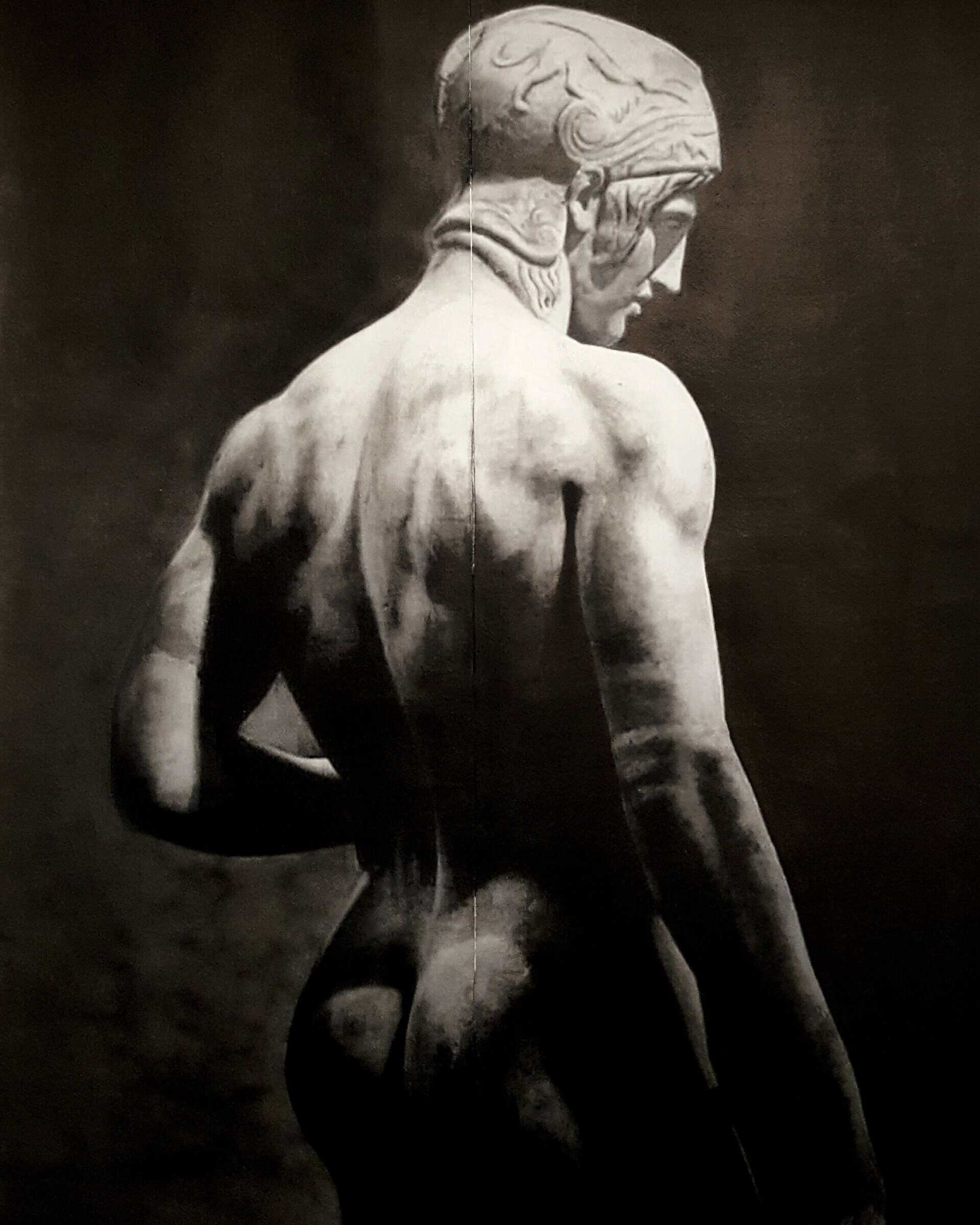 “Avevo 17 anni quando Bruno-Ionnis ritrovò mia nonna. Bruno apparteneva a una famiglia benestante che amava l’arte e la cultura. Per ringraziare la mia famiglia, per quanto aveva fatto per lui durante la guerra, propose ai miei genitori di portarmi in Italia, a Padova per frequentare l’università. Sarei stato ospite nella sua casa a Valdagno. Ovviamente, non feci più ritorno in Grecia, mi laureai in farmacia come desiderava mio padre ma al contempo continuai a coltivare l’amore per l’arte e a disegnare. Ebbi modo di conoscere l’arte romana, poi quella italiana, mi innamorai di Caravaggio e mi feci notare per i miei disegni. All’epoca copiavo Durer, Rembrandt. Nel frattempo mi ero trasferito a Bologna, dove attualmente risiedo, avevo conosciuto due artisti fondamentali nella mia svolta artistica: il pittore Volfango e lo scultore Giuliano Giuliani. Grazie a loro 15 anni fa iniziai a dipingere, e quello che dipingevo era la classicità greca, eterna e immutabile”.