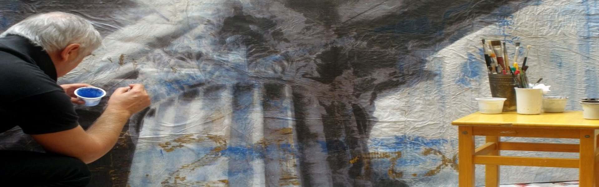 “Sono sempre stato affascinato dalle proporzioni delle statue greche, dai profili purissimi, dal candore che emergeva dal buio, dal bianco e nero che avevo imparato ad amare in Caravaggio, mi seduceva la tridimensionalità. Dipingo su tela, su juta, su canapa, su collage di stoffa e lenzuola di canapa, quelle che mia nonna utilizzava per raccogliere le olive. Preparo le tele con gesso acrilico e polvere di marmo, mi piacere rendere materico il supporto, questo per dimostrare come il tempo corrompa i materiali che si fessurano o si crepano, ma l’arte antica della Grecia rimane eterna”.