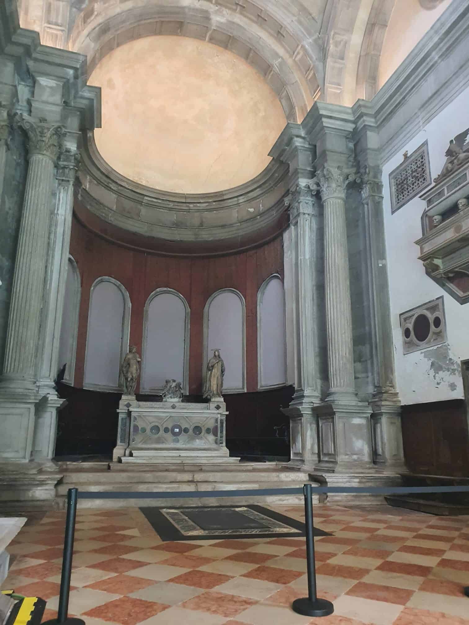 E allora con il church-tour ci trasferiamo a Cannaregio. Impossibile da un po’ di anni vedere il portone aperto di San Simeon Piccolo di fronte alla stazione ferroviaria. Stupì con la sua forma circolare e neo-classifica perfino Napoleone Bonaparte (“mai vista prima una chiesa senza cupola, ma una cupola senza chiesa sì!”), sembra avesse esternato il generale francese, formato imperatore, nel 1807, nella sua prima e unica visita a Venezia. S.Andrea della Zirada a Piazzale Roma, vuota, e chiusa da tempo. Continuando a Cannaregio, chiesa delle Penitenti, S.Girolamo e Cappuccine ( con due Palma il Giovane) chiuse. Per vedere “l’Ultima Cena” del Tintoretto a San Marcuola occorre essere fortunati. Aperta per le messe martedì, giovedì e sabato. Ma probabilmente non si trovano preti. Della Maddalena, chiesa esoterica cara a Giacomo Casanova, non ne parliamo. C’è un G.B. Tiepolo con l’Ultima Cena. Ma il portone ha la muffa ai lucchetti. S.Fosca, nella centralissima Strada Nuova, chiusa da mo’.