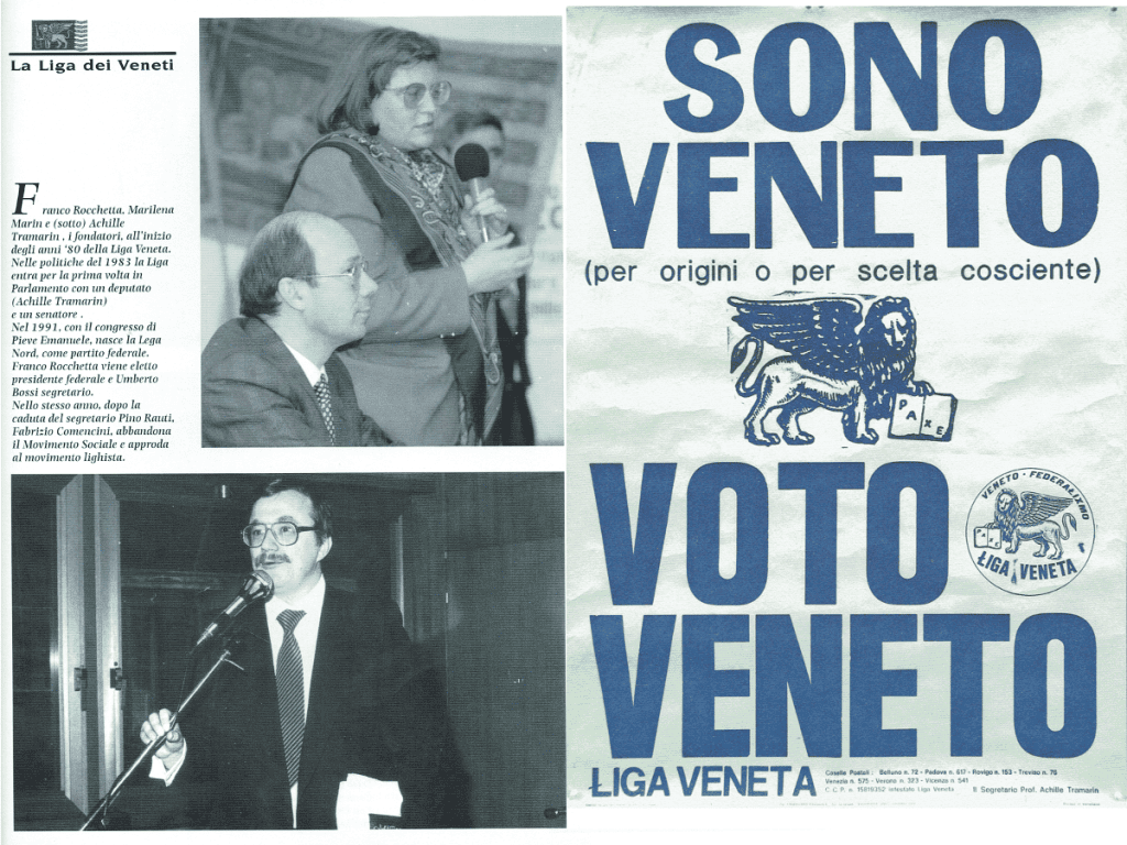 Nel 1980 nasce ufficialmente a Padova la Lega (o Liga) Veneta che porterà alle politiche del 1983 per la prima volta due rappresentanti, uno al Senato e uno alla Camera.