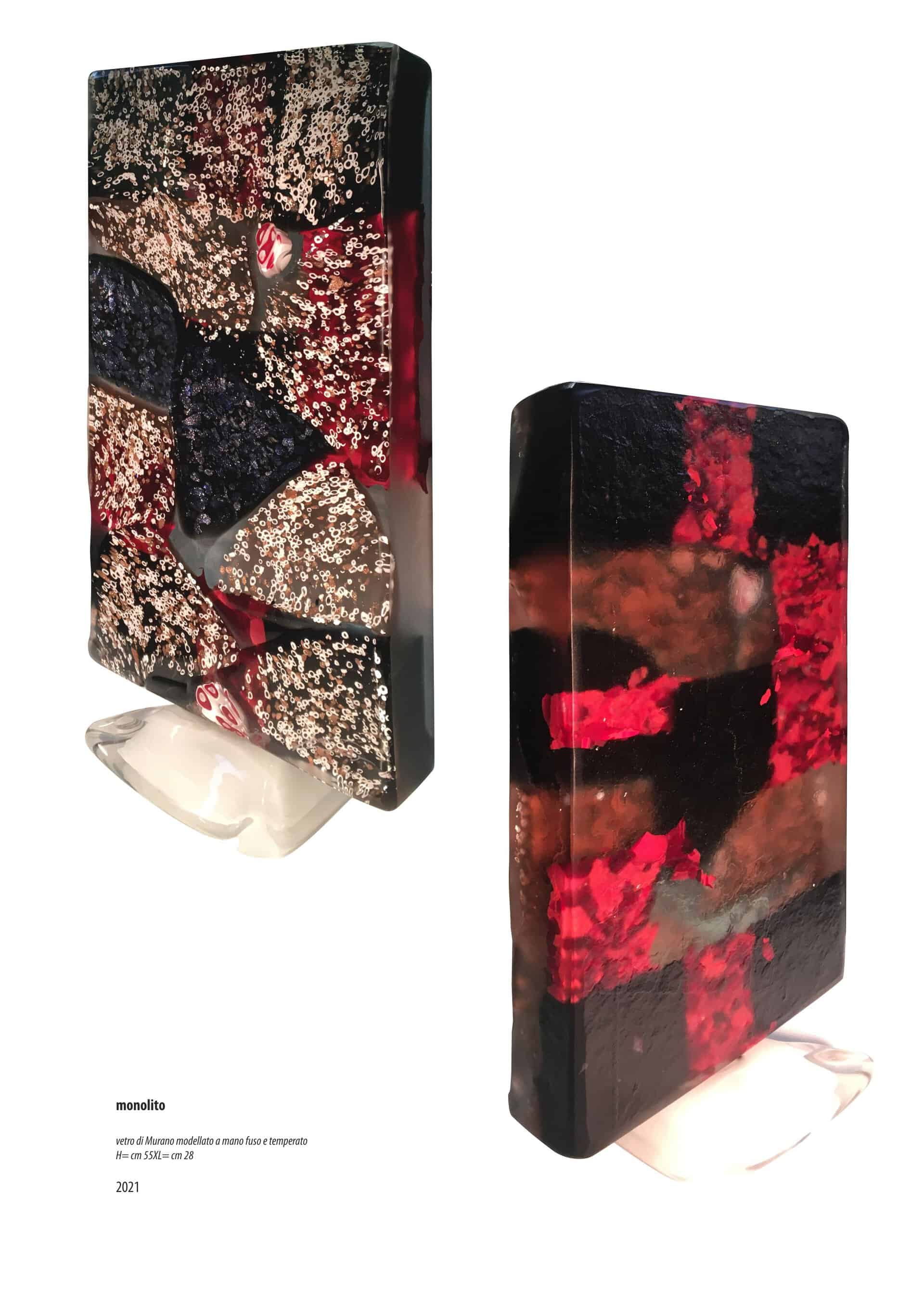 Le mie sculture sono grosse masse di vetro che trovano nella ricottura molteplici difficoltà nella composizione, tanto che per superare questa complessità mi sono costruito un forno per poter temperare opere da 50 kg impiegando 9 giorni di muffola o tempera per eliminare tutti i coefficienti di dilatazione di ogni colore.