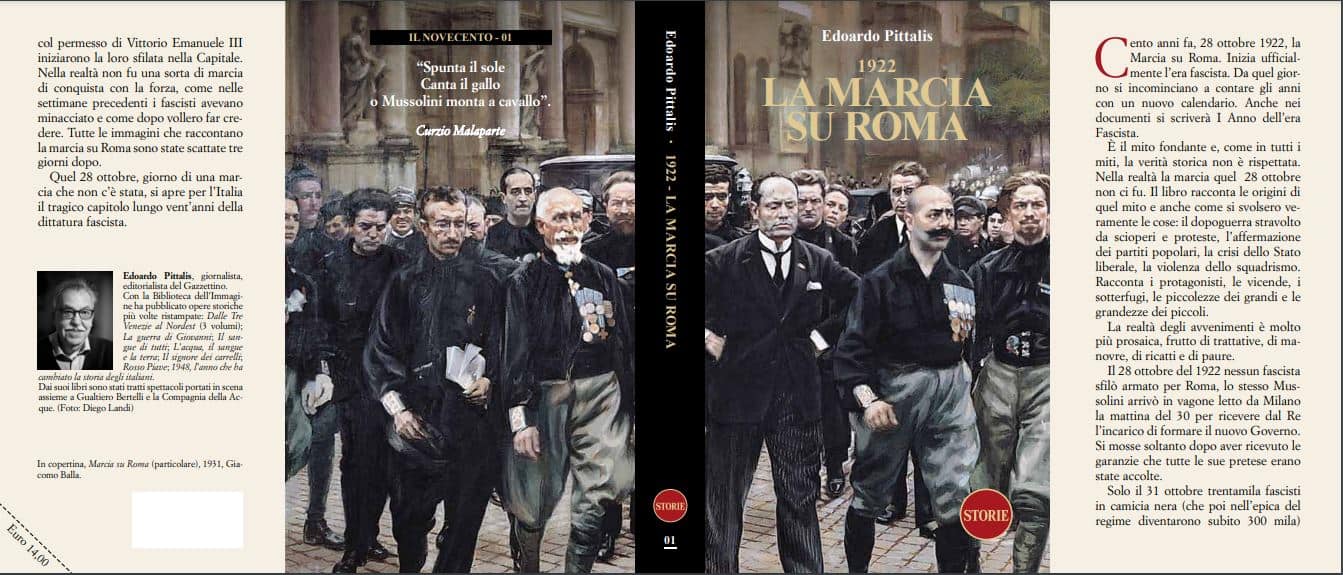 Presentazione-spettacolo questa sera domenica 20 novembre, alle ore 18, alla Libreria Lovat di Villorba (via Newton) ore 18) per il libro del direttore di http://www.enordest.it Edoardo Pittalis “1922. La Marcia su Roma” (Edizioni Storie della Piccola casa editrice di Giovanni Santarossa). Sarà un racconto con la colonna sonora: con Pittalis ci saranno il cantautore Gualtiero Bertelli, fresco Premio Tenco, e il musicista Cimo Nogarin. Il periodo tormentato della storia italiana sarà rievocato con le canzoni dell’epoca e i canti popolari che contrassegnarono scontri, illusioni, tragedie.