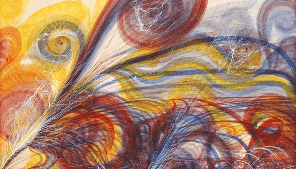 Astrattismo come risposta all’ignoto. Al desiderio di rappresentare l’invisibile. E’ questa la forte spinta che ha animato i primi tentativi di rappresentare su tela ciò che era solo intuizione del cuore. Visione dello spirito e afflato verso la parte più profonda dell’inconscio. Tra i pionieri si può sicuramente annoverare Georgiana Houghton. Nata a Las Palmas nelle isole Canarie nel 1814, Houghton, iniziò la sua carriera artistica avvicinandosi alla corrente Pre-Raffaelita. Per poi cambiare rotta iniziando a dipingere immagini di carattere spirituale che, a sua detta, le giungevano direttamente dal mondo soprannaturale con cui era entrata in contatto.