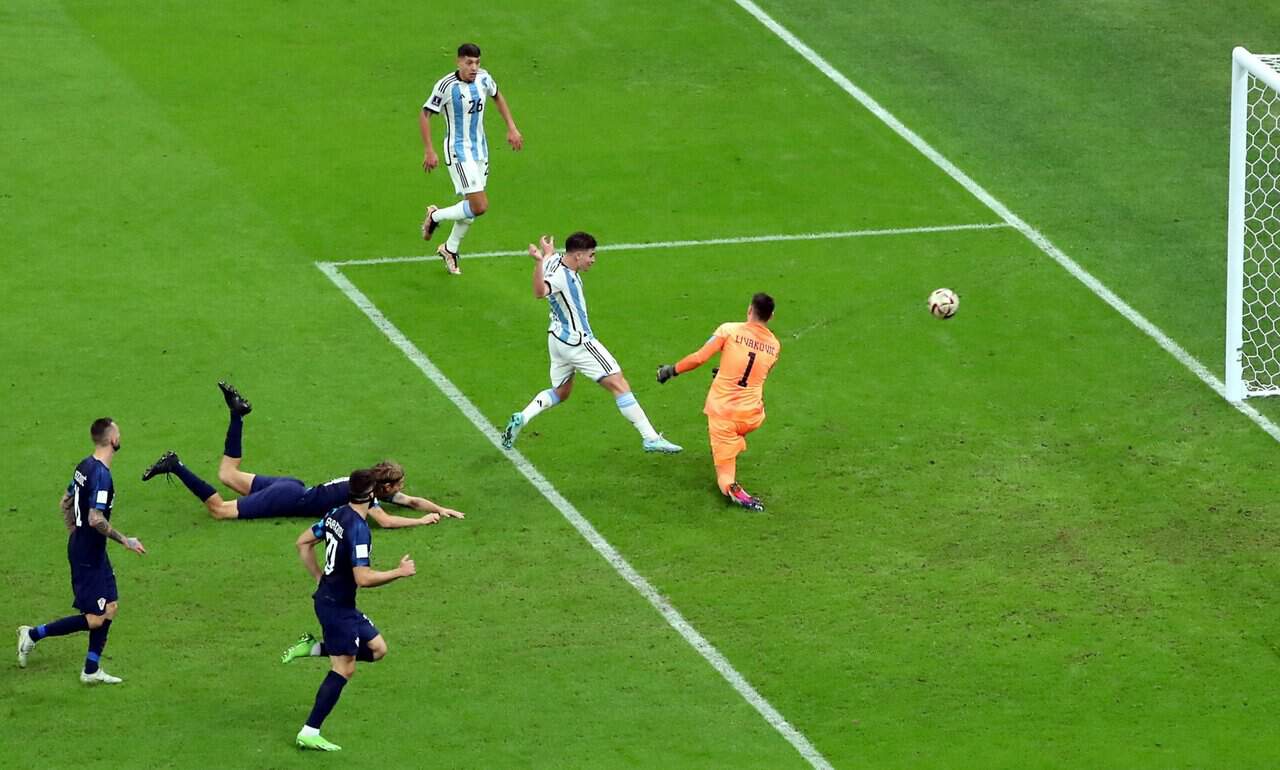 Torniamo alle semifinali, entrambe si sono decise rapidamente, due errori difensivi della Croazia, che era stata quasi perfetta, nelle prime 5 gare, originano il 3-0 dell’Argentina, con la doppietta del 22enne Julian Alvarez, del Manchester City, talento che in prospettiva, come incidenza, può valere Messi e Mbappè. Soprattutto, l’attaccante esterno procura il rigore che sblocca il match, realizzato dalla Pulce. Che lo chiuderà con uno slalom a destra.