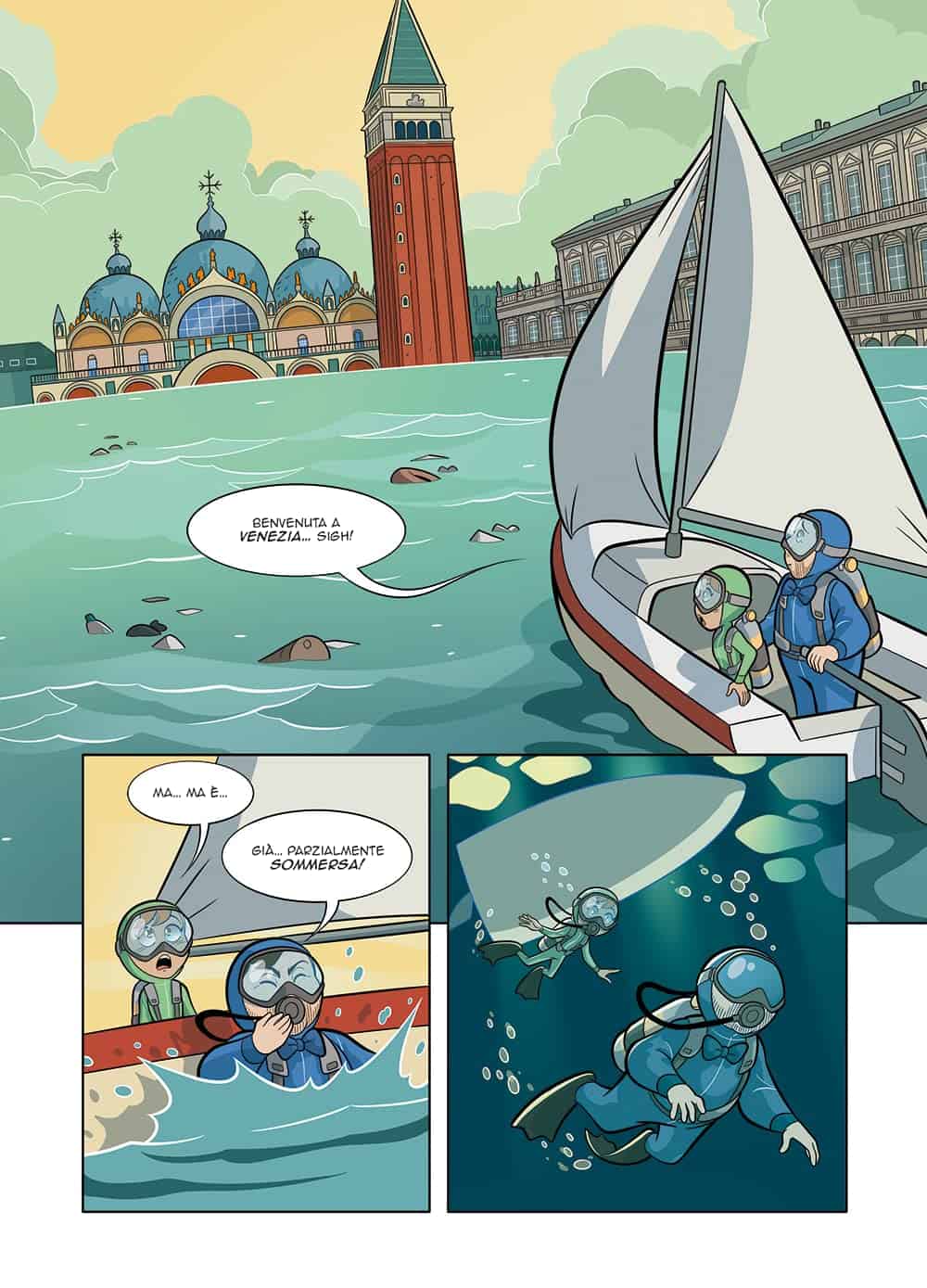 “Venezia è una parte del mio viaggio a fumetti nel futuro del clima: è un esempio noto a tutti che permette di capire quanto rischiano tutte le comunità costiere”.