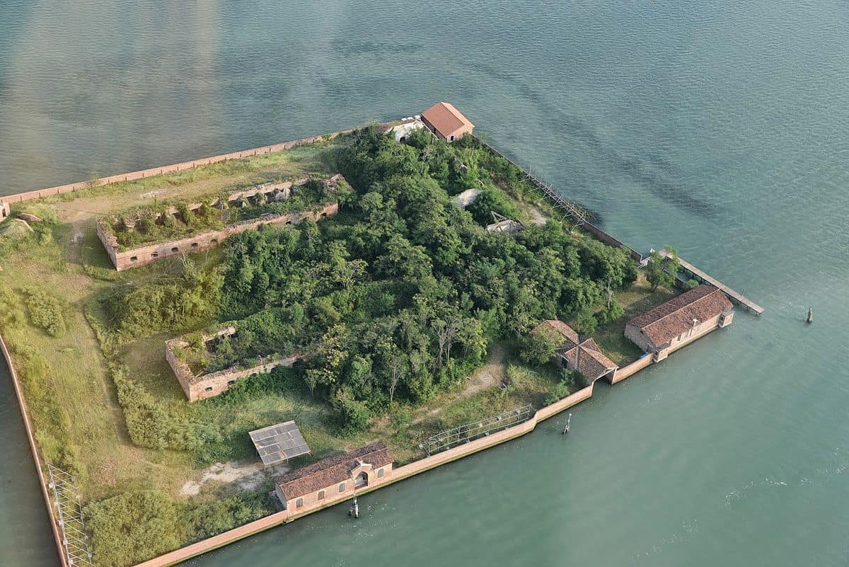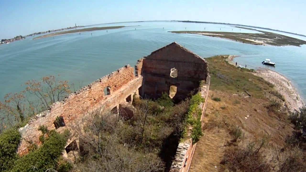 La seconda storia, positiva, riguarda l’isola di San Giacomo in Paludo, nel canale omonimo tra Murano e Burano. Isola medioevale, già centro per i pellegrini diretti in Terrasanta e custodita dai Cistercensi prima, e dai frati minori conventuali poi. Tutto si ribalta come al solito quando arrivano i francesi con Napoleone. Addio convento, pronta la caserma. Durerà fino al 1961. Anno dell’abbandono del Demanio militare. Nel 1975, grazie alla Biennale, un coraggioso artista di fama mondiale, Jerzy Grotowsky, organizza uno spettacolo teatrale in isola: Apocalypsis cum figuris. Io c’ero, tutti gli spettatori al lume di candela. Poi seguono anni di ruberie e di abbandono. Sparisce perfino la statua della Madonna, poi recuperata.
