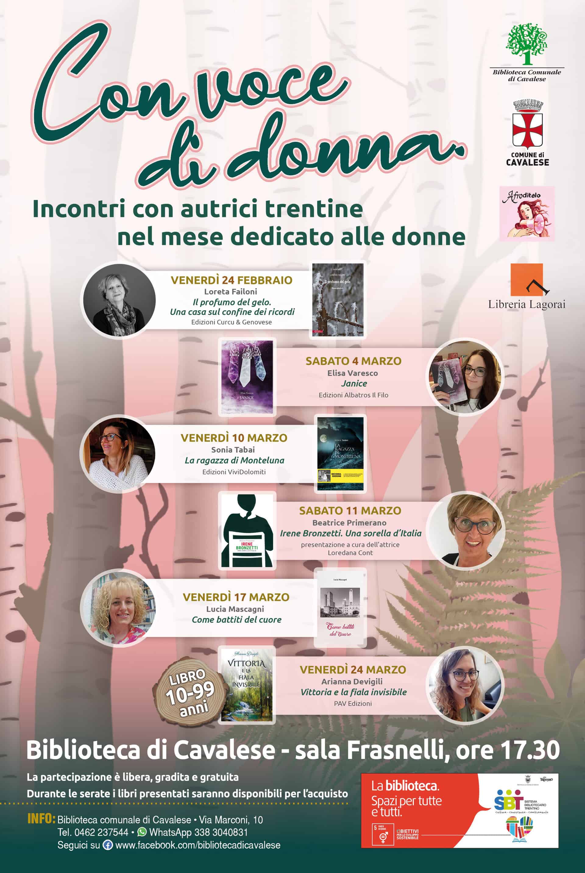 Proseguono, inoltre, gli appuntamenti della rassegna “Con voce di donna”, proposta dalla biblioteca e dall’assessorato alla cultura del Comune di Cavalese. Incontri con autrici trentine che presentano le loro opere.