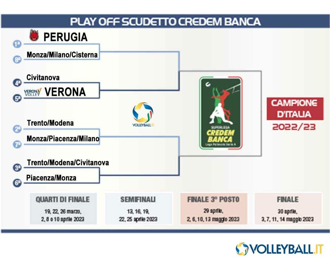 La finale Trento-Civitanova, con appena 3 finali vinte dai trentini nelle ultime, comunque sono favoriti, non solo per il fattore campo. Angelo Lorenzetti nel 2016 vinse lo scudetto a Modena e poi andò a Trento, stavolta la situazione può essere rovesciata.
