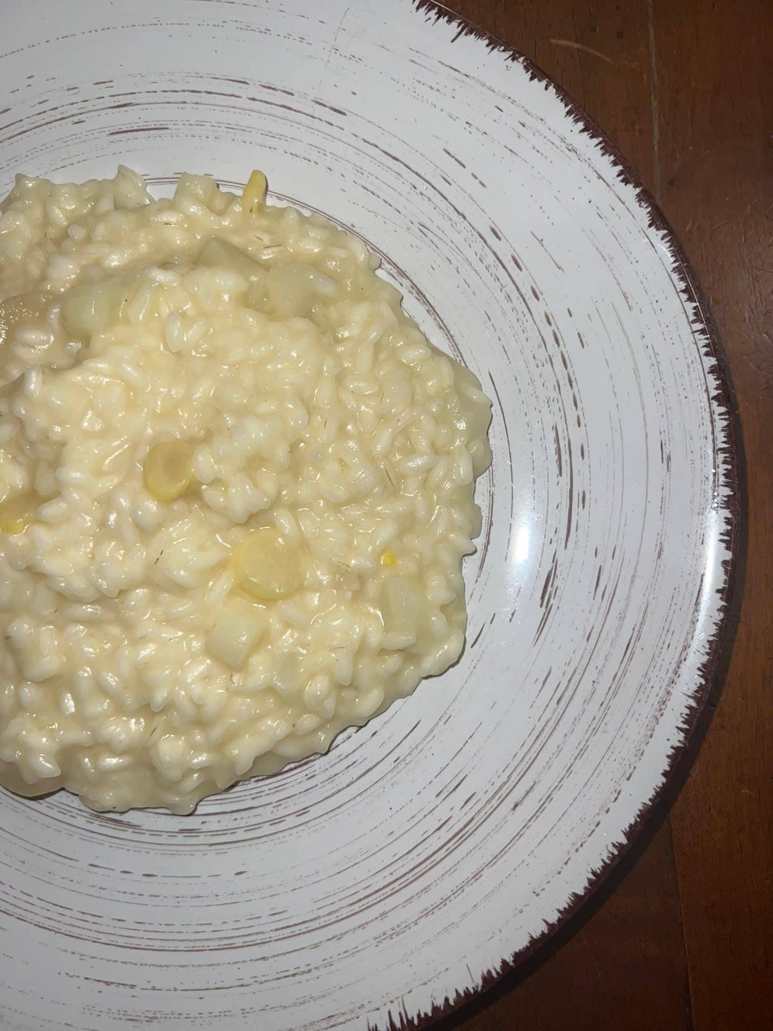400g di asparagi bianchi di Bassano Dop, 400g di riso Carnaroli, 1 litro di brodo vegetale, olio extravergine di oliva, parmigiano, sape e pepe qb.