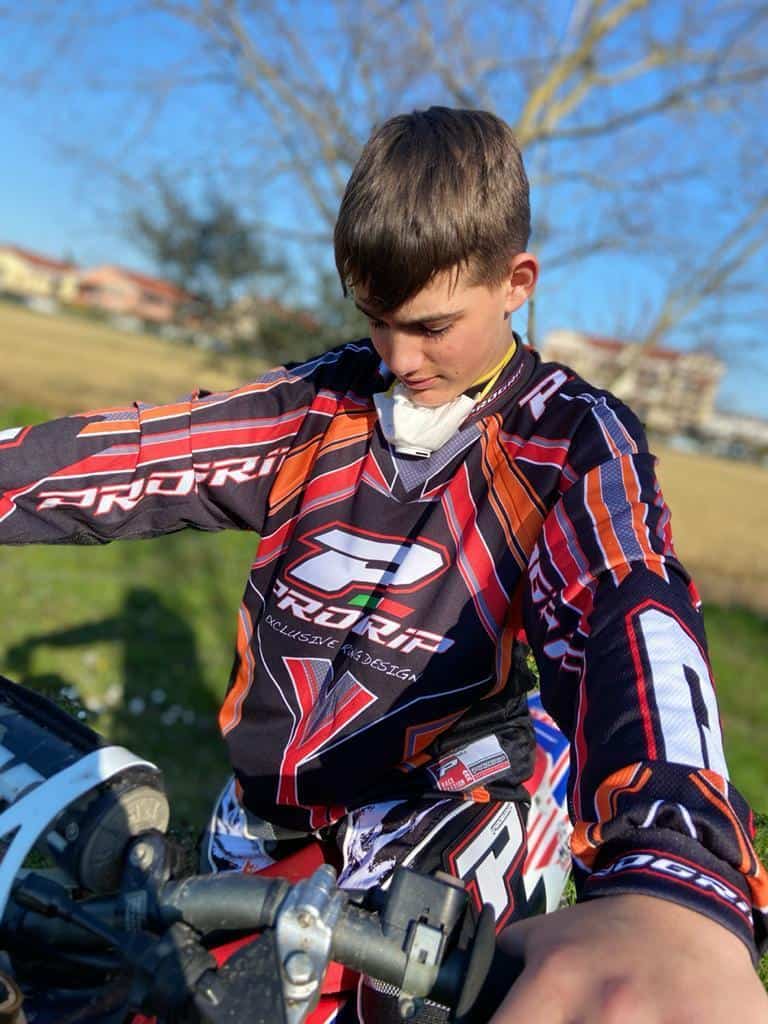 In sella alla sua Yamaha YZF300, figlio d’arte, come il padre che lo ha da sempre sostenuto e che da motociclista professionista vanta una serie di eccellenti piazzamenti nazionali.