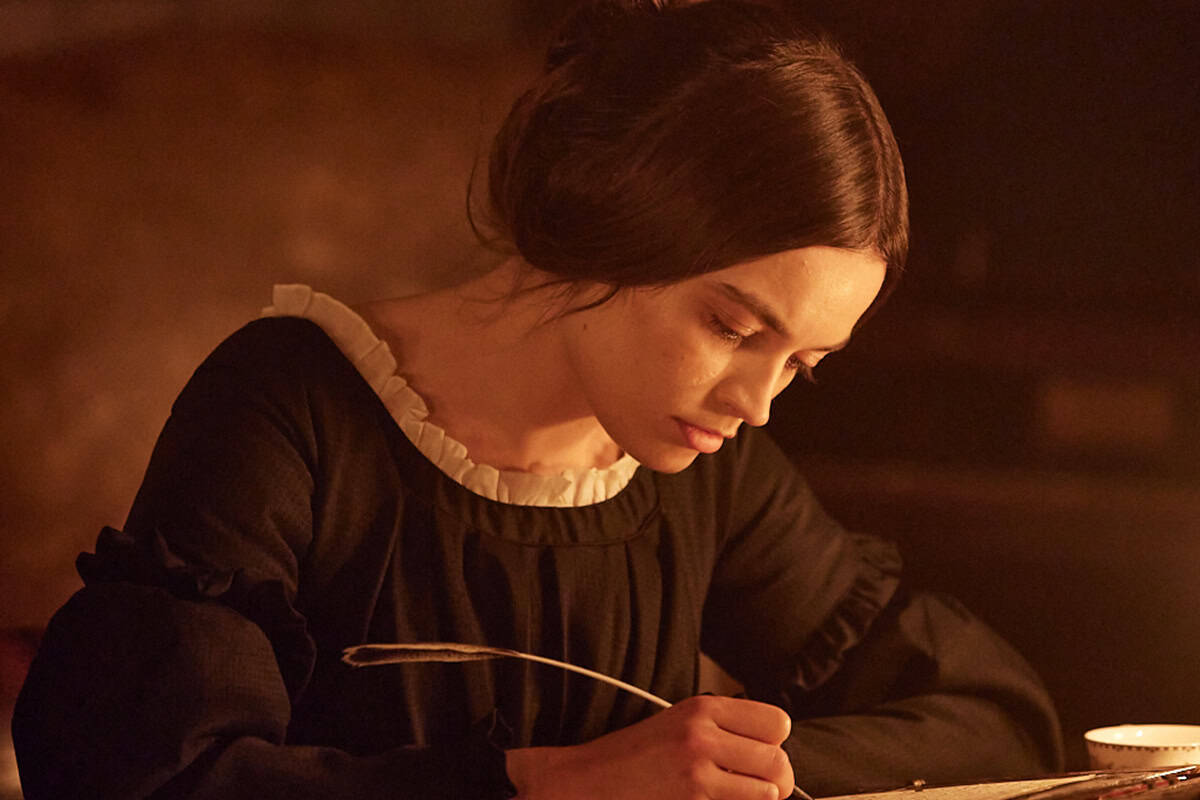 Però sarà proprio lo stesso curato a spingerla verso la scrittura ed a portare a termine il suo primo e unico romanzo. Il romanzo “Cime tempestose” che narrava della tormentata e difficile storia d’amore tra Heathcliff e Catherine (portati al cinema da Laurence Olivier e Merle Oberon nel 1939 con la regia di William Wyler e in televisione alla Rai con Massimo Girotti e Anna Maria Ferrero regia di Mario Landi), aleggia nel film della O’Connor. Ed è veramente brava a cogliere la grandezza della scrittrice facendoci vivere le sue emozioni di vita, staccandole dal suo romanzo. C’è il personaggio in primo piano reso ancor più credibile in tutte le sue manifestazioni dalla bravura dell’attrice Emma Mackey.