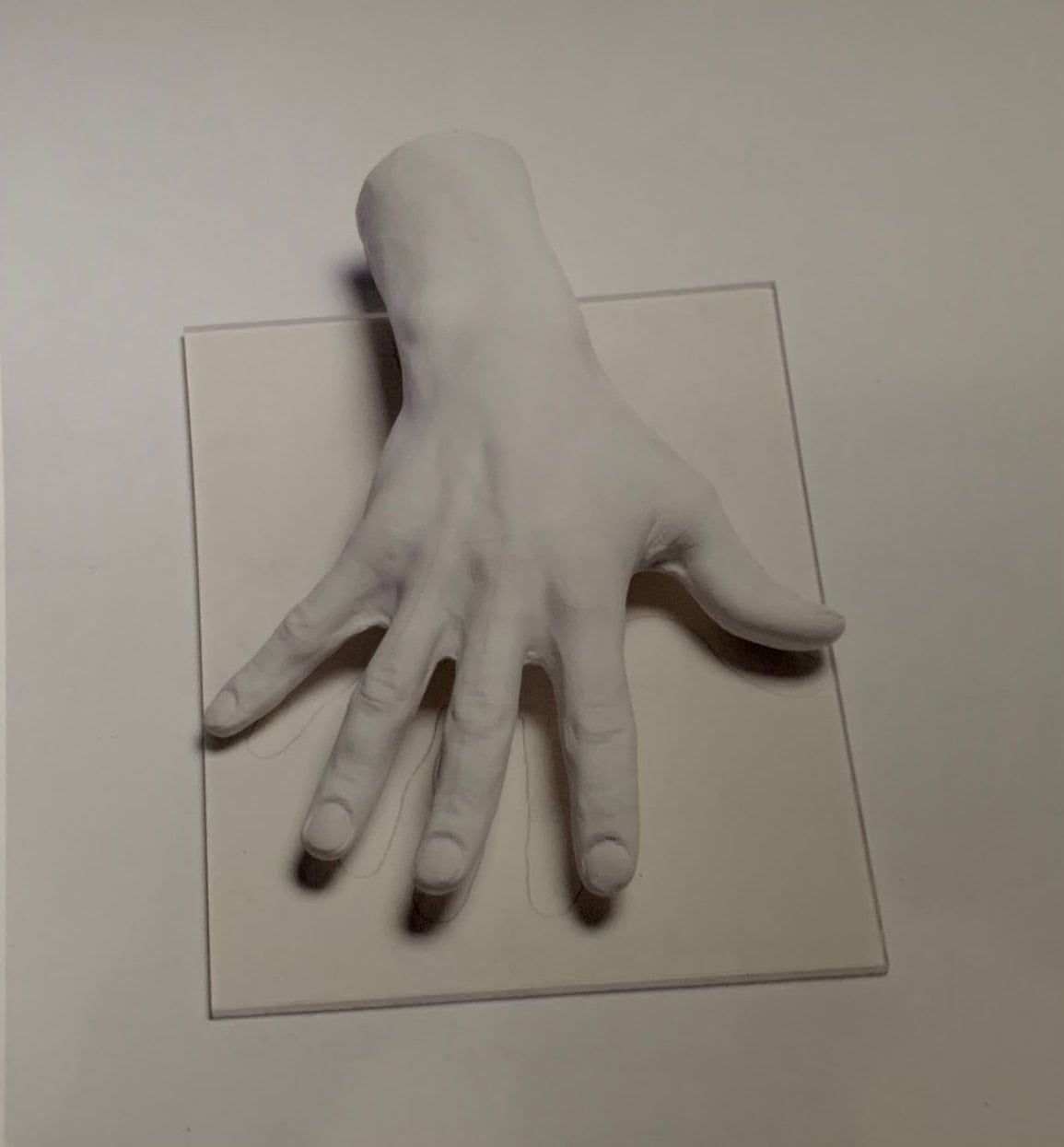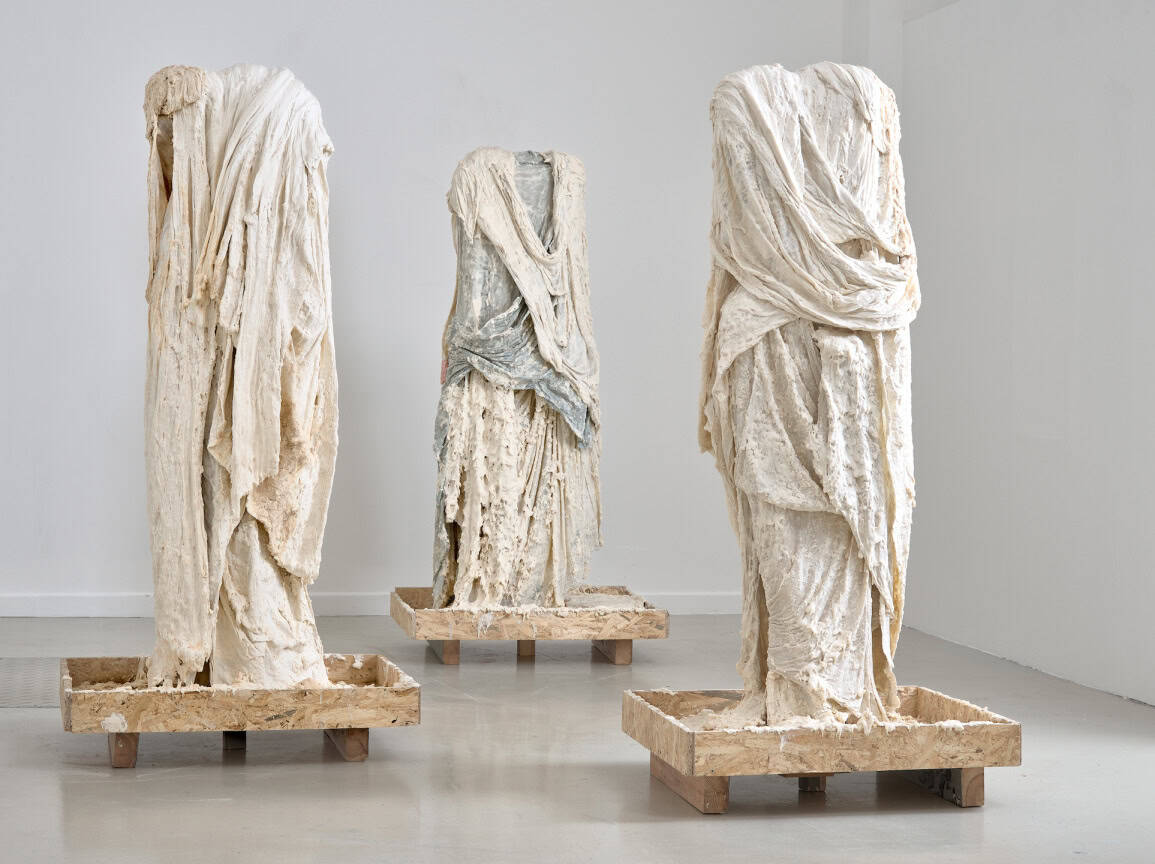 Le tre sculture di Giulio Paolini (Genova, 1940), realizzate in gesso, prendono il nome di “Proteo”, “Proteo (II)” e “Proteo (III)” che si rifanno al mutevole dio greco che aveva la capacità di trasformarsi in qualsiasi forma desiderasse. Citazione, duplicazione e frammentazione sono i tre temi che emergono in questa serie e che riassumono i temi intellettuali cari all’artista stesso. Come il multiforme Proteo, anche questo gruppo scultoreo può essere ammirato da diverse angolazioni dando vita a una meditazione poetica sulla natura metafisica della pratica artistica.