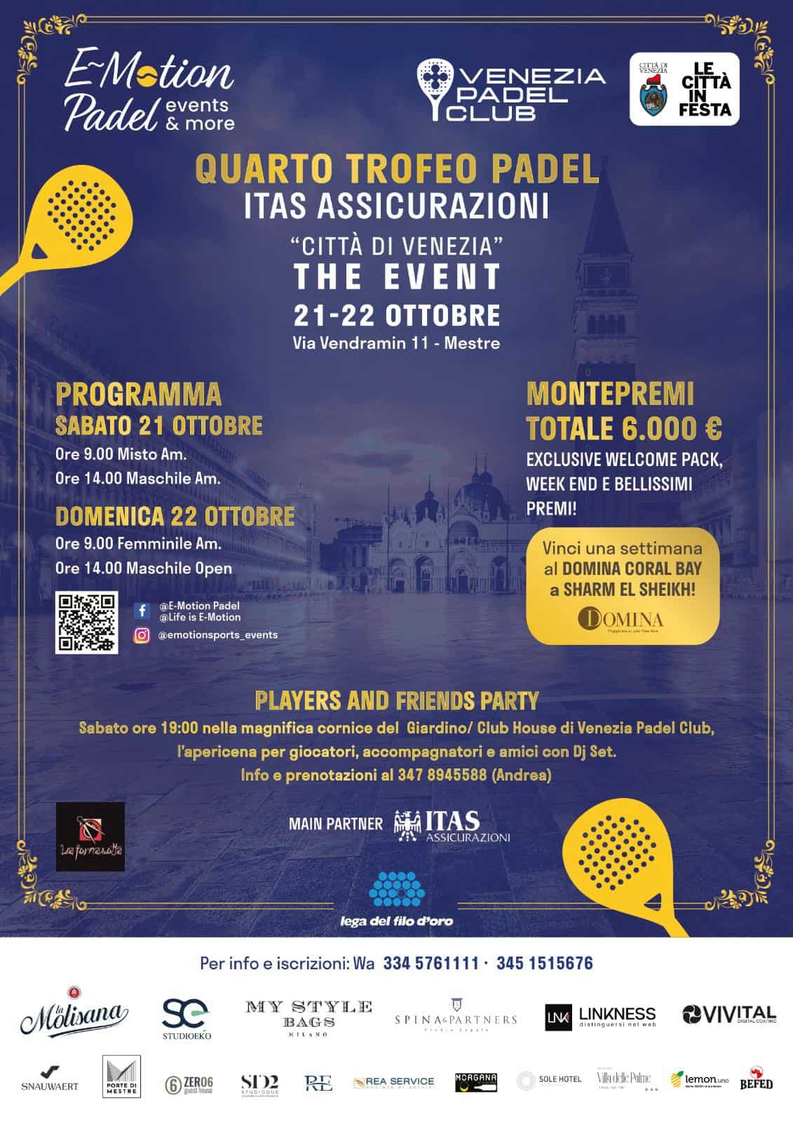 La Quarta edizione dei record, quella del Quarto Trofeo “Città di Venezia” Itas Assicurazioni, nel segno dell’organizzazione che Matteo Carponi, con il suo E-Motion Padel, ha portato a Venezia. L’edizione andata in scena il 21/22 ottobre, ha visto il suo prologo con la conferenza stampa istituzionale all’interno del Business center HIVE del Museo M9 a Mestre.