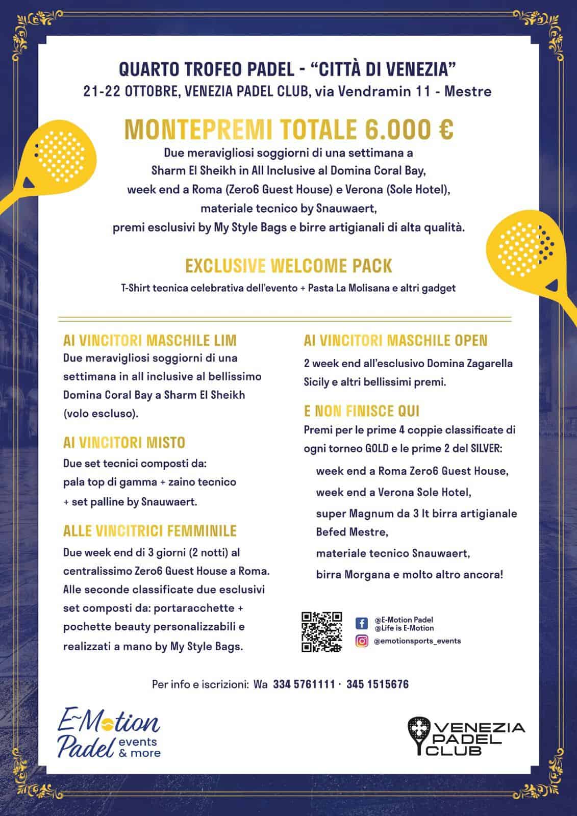 Venendo al torneo, sono arrivati a Mestre 90 coppie di giocatori da 5 regioni e 20 diverse città. Una manifestazione di altissimo livello organizzativo con tanti spettatori nella due giorni di kermesse nella nuova e innovativa struttura interamente dedicata a questo sport, il Venezia Padel Club. Un torneo che ha appassionato sia i giocatori che i tanti spettatori intervenuti e che ha visto trionfare nel misto la coppia Michele Vianello e Lucia Di Paola , nel maschile LIM, invece, si sono imposti Ennio Gallo con Filippo Negro. Tra le donne Marina Padoan e Federica Vinci mentre il titolo più prestigioso dell’Open Maschile va alla coppia Andrea Godio e Riccardo Rondinelli provenienti dall’Emilia Romagna contro gli argentini Rafael Bosch Gutierrez e Orazio Giussani.