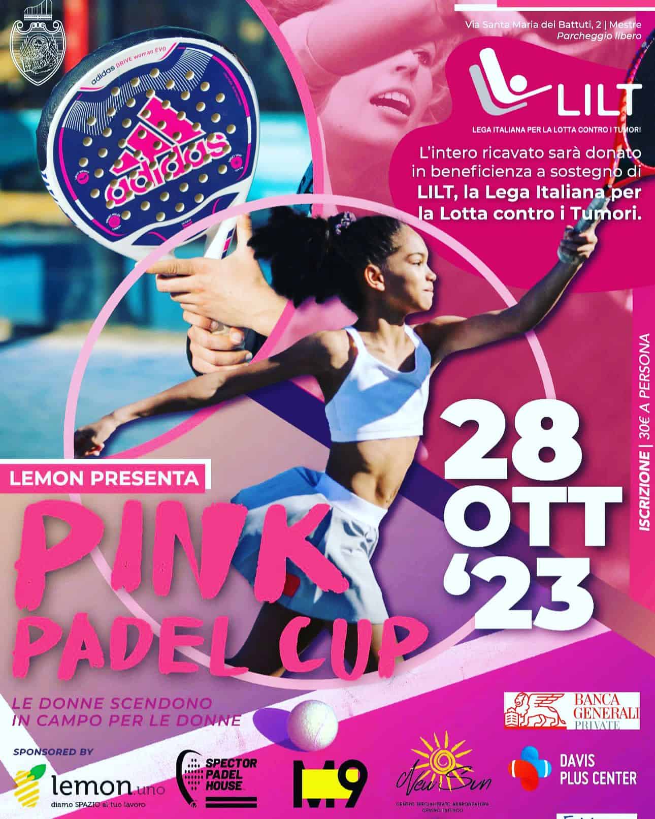 Ritorna la Pink Padel Cup di Mestre giunta alla sua quarta edizione. L’annuncio è stato dato in una conferenza stampa nella sede comunale di via Palazzo a Mestre. Strada aperta, quindi, al nuovo successo del torneo ideato e realizzato da Ilaria Edel Muzzati. Ogni anno ha la finalità della raccolta fondi destinata alla beneficenza, questa volta a favore della Lega Nazionale Lotta ai Tumori LILT. Si parte oggi sabato 28 ottobre, dalle 9 alle 14, presso il Davis Plus Center in via Santa Maria dei Battuti a Mestre.