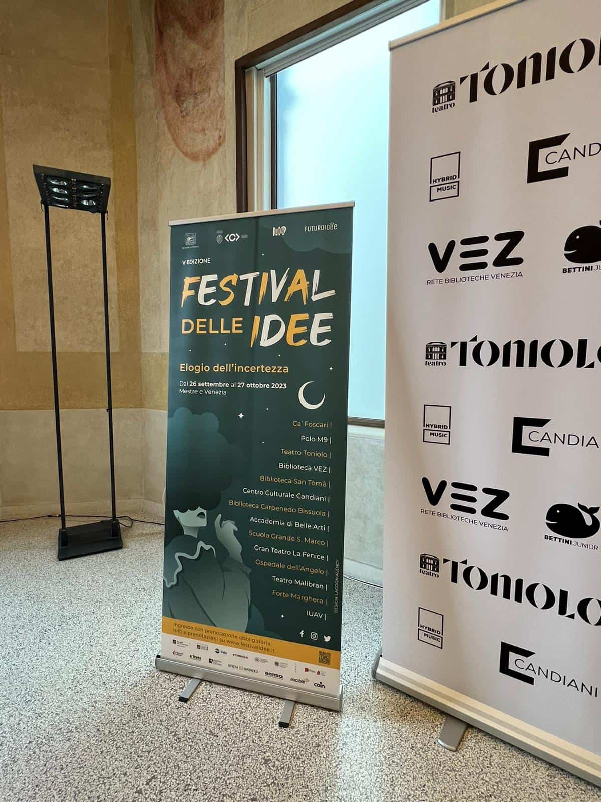 Il FESTIVAL DELLE IDEE giunto quest’anno alla sua quinta edizione, un intero mese – da settembre a ottobre – di cultura, letteratura, cinema, musica, è considerato tra i grandi eventi della Regione del Veneto di cui gode il Patrocinio insieme a quello del Comune di Venezia. È partecipato da Vela Spa, Azienda Ulss3 Serenissima e dal Circuito Teatrale Regionale Arteven.