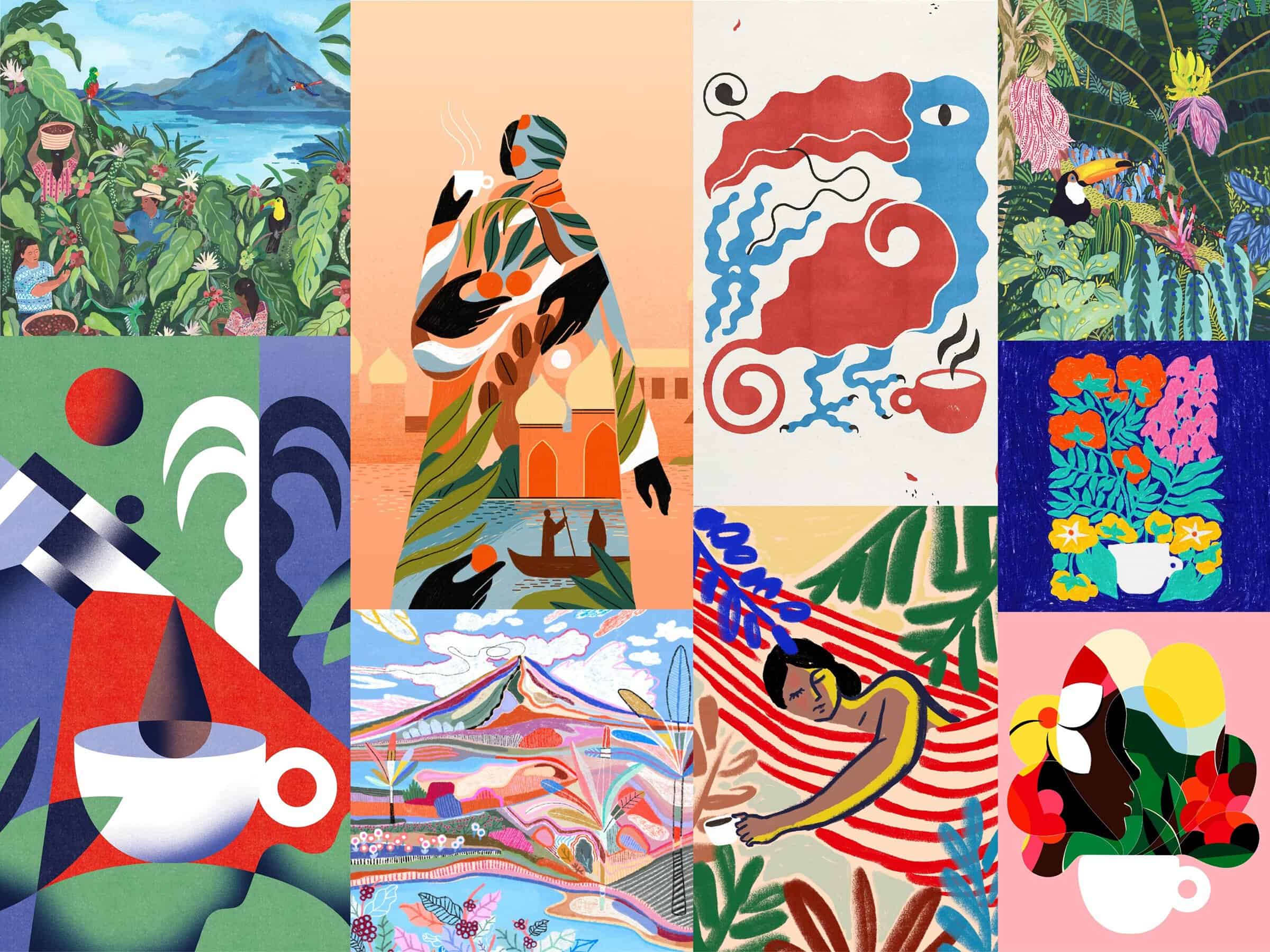 A raccontare il Costa Rica  è il duo berlinese Zebu attivo nel settore della pittura e della serigrafia mentre la Svizzera Alice Hoffman ha il compito di tratteggiare il volto dell’Etiopia. Marina ester Castaldo esalta il Nicaragua, terra dei laghi e dei vulcani mentre Angela Mckay mira ai costumi del Brasile. poi Alexander Hhabbazi illustra il paradiso incontaminato dell’Honduras e Fabian Lavater da il volto al Guatemala. Infine Liv Lee rende omaggio a El Salvador e Miranda Sofroniou guarda al Rwanda il paese dalle mille colline. I nove manifesti possono essere visti sui profili social di Illycaffè.