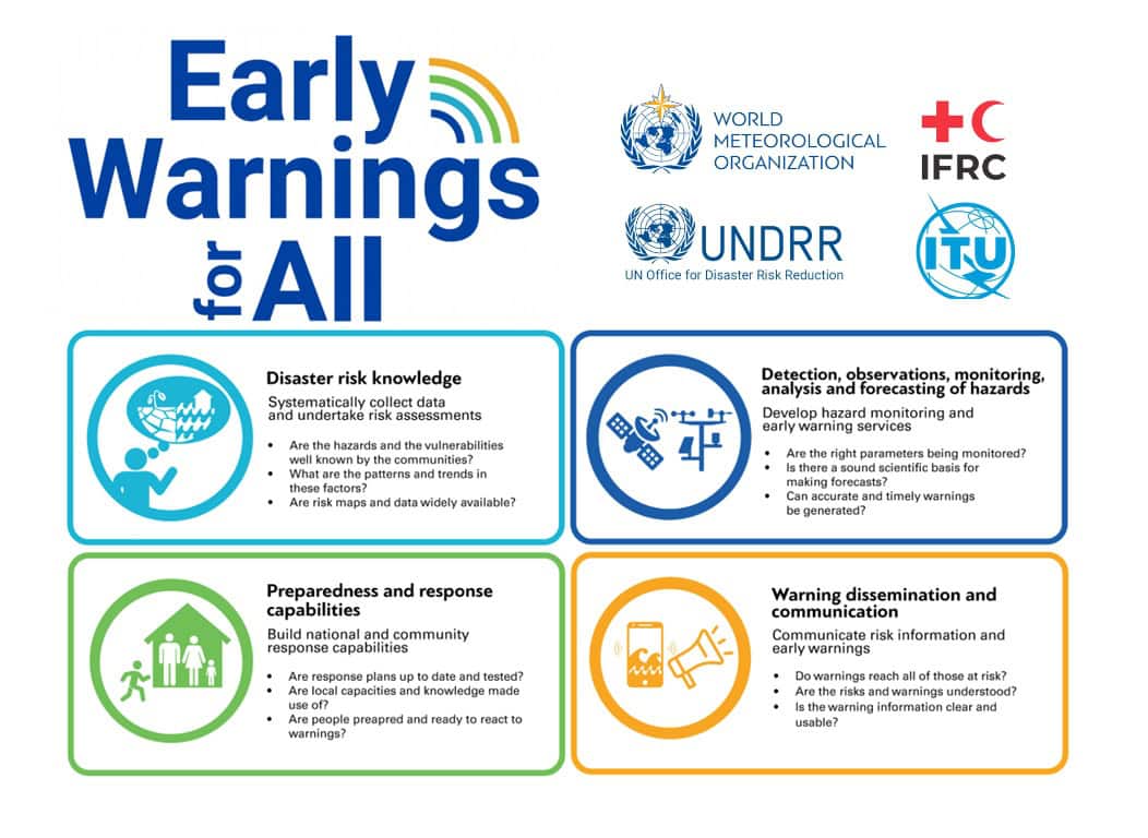 Il sistema dell’early warning, oltre al preminente interesse per la limitazione delle vittime e dei danni fisici alle popolazioni colpite, comporta un risparmio medio del 30 % sui costi della ricostruzione. E comporta anche una maggiore facilità e minori tempi di ripristino delle normali attività delle società colpite. Per giungere a realizzare questo importante risultato, la creazione di sistemi di preallarme collettivo e di procedure e sistemi di prevenzione e riduzione del danno, risulta indispensabile un approccio multi attoriale e multi settoriale. Questione di rilevanza mondiale se si ricorda che oltre il 70 % della popolazione mondiale vive in zone rivierasche che, in modi e tempi variabili, saranno interessate da problematiche di innalzamento dei livelli delle acque.