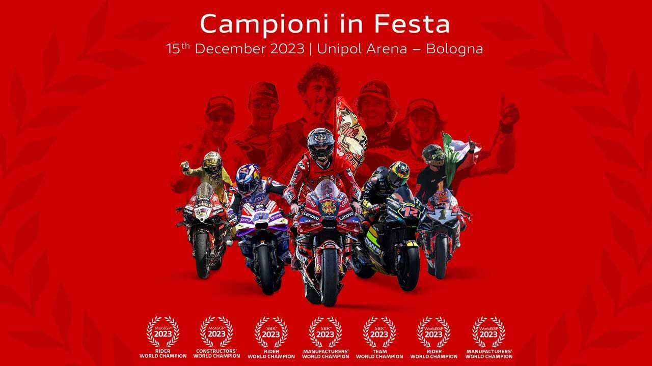 “Un anno fa – sottolinea Claudio Domenicali, ceo della casa di Borgo Panigale, che si aggiudicò il primo mondiale nel 2007, con l’australiano Casey Stoner – con i tifosi di tutto il mondo abbiamo festeggiato i titoli motogp e worldsbk, facendoci travolgere dalla gioia e dall’entusiasmo. Questa è la vittoria della consapevolezza, siamo noi in questo momento i migliori al mondo nel fare le corse”. La festa sarà il 15 dicembre a Bologna.