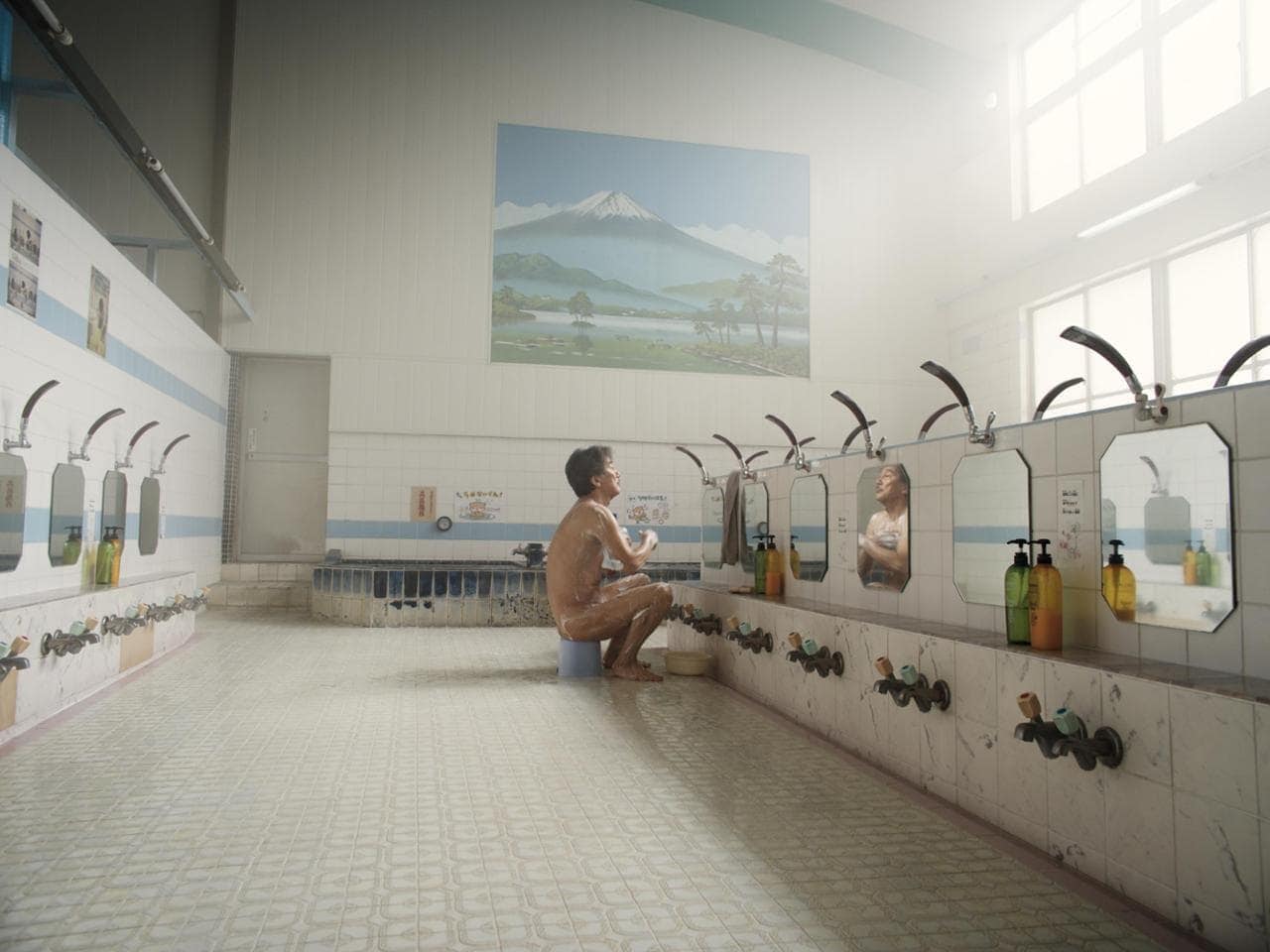 Hirayama inizia le sue pulizie con dedizione assoluta in questi bagni pubblici che sono di rara bellezza. Userà anche uno specchietto particolare per vedere gli angoli più nascosti. In tutto questo tempo nemmeno una parola, salvo un paio di battute con un collega molto più giovane che trovandosi a corto di soldi gli dirà: “Senza soldi non posso nemmeno amare…che vita è questa?” Hirayama l’aiuterà prestandogli del denaro che non rivedrà più in quanto il giovane si licenzierà ben presto. Le sue giornate proseguono tutte uguali. La breve sosta per uno snak nel solito bar, qualche scatto fotografico con la sua Olympus assolutamente analogica (come il suo mondo dove si concede esclusivamente un vecchio telefonino) e una breve sosta nel parco dove osserva una ragazza che mangia un tramezzino. La sera il ritorno a casa non prima di essersi recato sempre in luogo pubblico a fare la doccia e dopo immergersi in una vasca con idromassaggio e poi la scrupolosità nel “curare” le sue piantine. Prima di addormentarsi qualche pagina di William Faulkner, Patricia Highsmith e la giapponese Aya Koda.