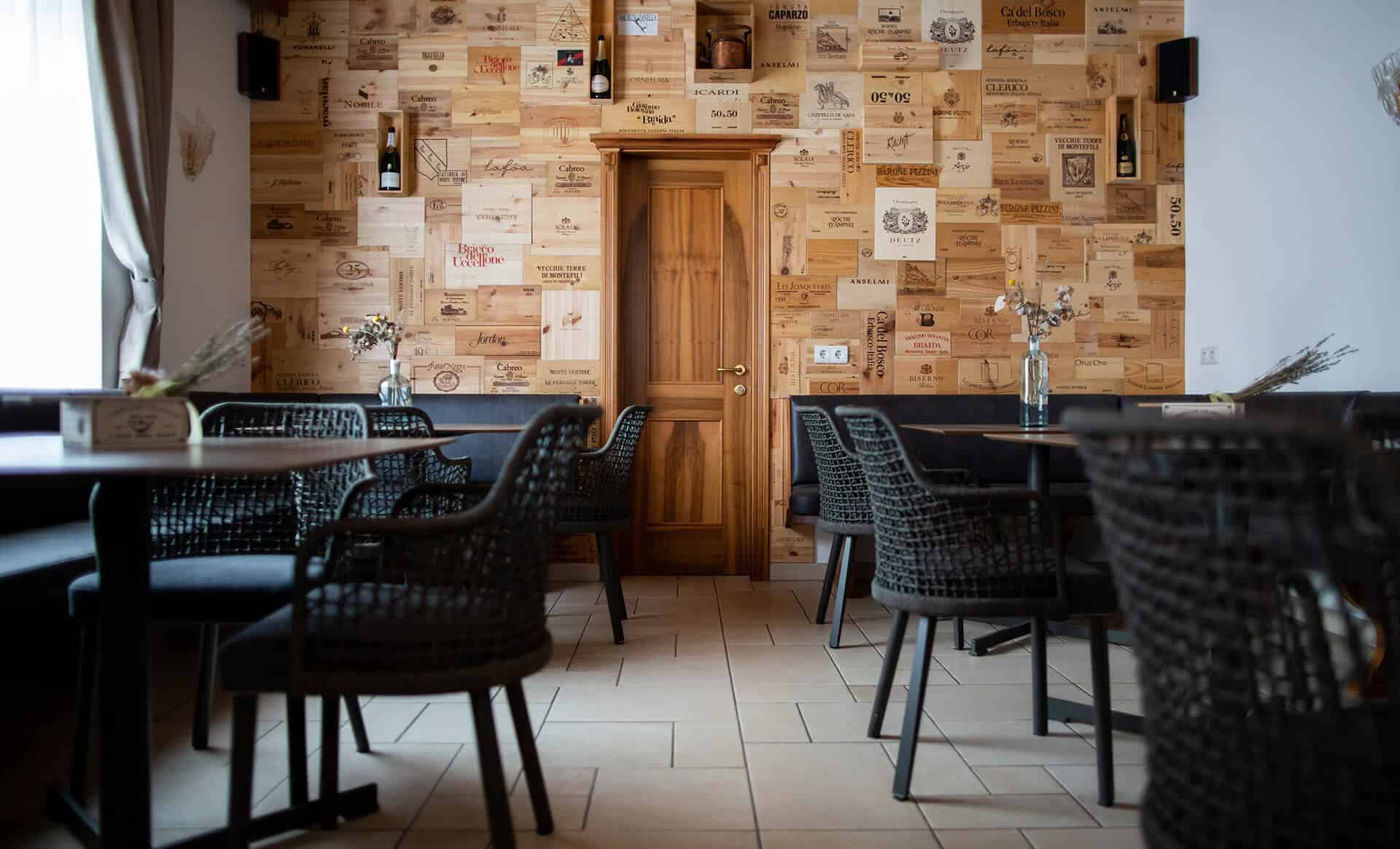 A pranzo e a cena, nella luminosa sala, si possono gustare i piatti genuini della tradizione alpina e mediterranea. È offerto un menù gluten free per gli ospiti celiaci, paste fresche fatte in casa trafilate al bronzo, un piccolo buffet di antipasti e insalate.