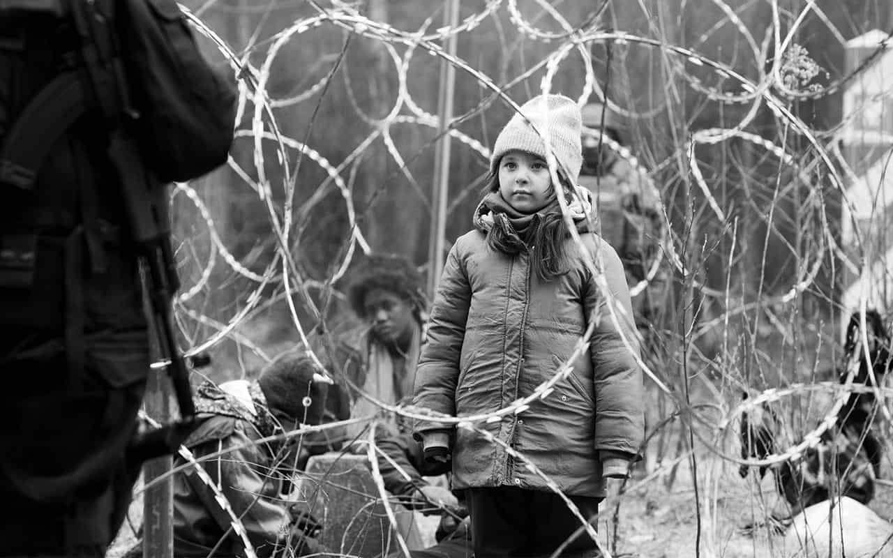 Il cinema della settantaquattrenne polacca Agnieszka Holland da sempre tocca vicende e fatti piuttosto scottanti soprattutto quello in chiave militante. In particolare con “Europa Europa” del 1991 che fu anche candidato all’Oscar come miglior sceneggiatura, ma possiamo anche ricordare “La febbre”, “Olivier, Olivier” e “L’ombra di Stalin” che fu in corsa per l’Orso d’oro a Berlino. In questi giorni è nella sale cinematografiche con il suo ultimo lavoro intitolato “Green border” titolo originale “Zielona granica”, che ha vinto il premio speciale della giuria nell’ultima mostra del cinema di Venezia. Da sottolineare che il regime polacco non ha voluto candidare questo film per l’Oscar come miglior film straniero. Si tratta di un lungometraggio bellissimo ma allo stesso tempo molto duro, toccante, al limite della ferocia espressa in alcune sequenze molto forti ma realiste al punto da far immedesimare lo spettatore nell’ambientazione. Tutto girato in bianco e nero e non poteva essere altrimenti, visto la splendida realizzazione delle immagini che attraversano con lucidità registica l’immensa foresta che unisce o se vogliamo divide i confini tra la Polonia e la Bielorussia.