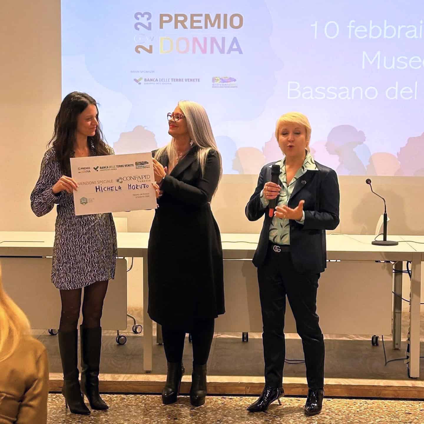 Menzione speciale “CONFAPID” a Michela Morutto. Premio consegnato da Luigina Barbuio e Cheti Ciuto, consigliere ConfapiD Venezia, nonché membri di giuria.
