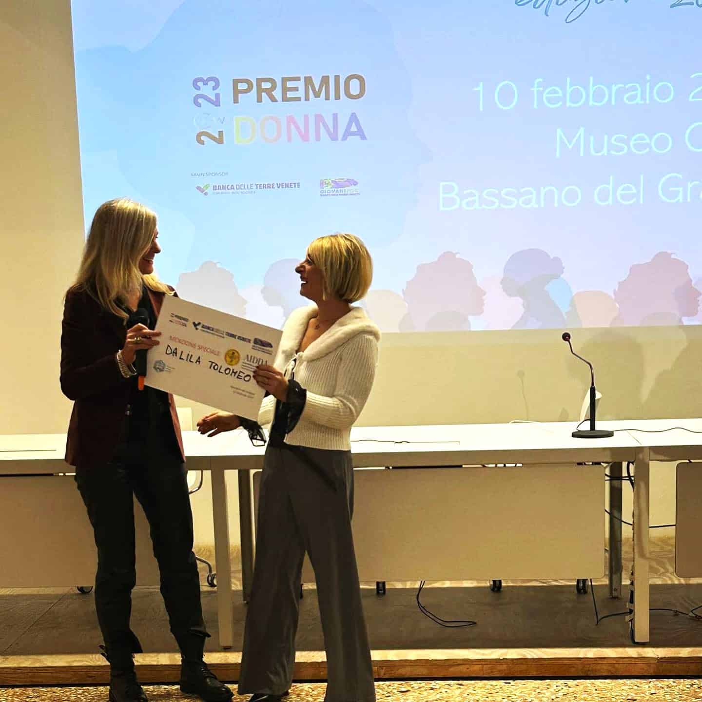Menzione speciale anche all’imprenditrice Dalila Tolomeo, la quale ha ricevuto il premio “AIDDA” dell’Associazione “Fare Impresa al Femminile”. Dalila è socia dell’azienda P&T Consulting sas di Treviso, realtà associata a Confapi Treviso. Si posiziona tra le prime tre Società Distributrici Innovative nel Mondo del Free From e della Cosmetica Naturale. Attualmente, oltre al progetto di crescita della Società P&T nell’ambito dei mercati di riferimento, Dalila sta lavorando per fondare un’Associazione che aiuti le donne in difficoltà. Soprattutto quelle maltrattate psicologicamente e abbandonate dal loro marito.