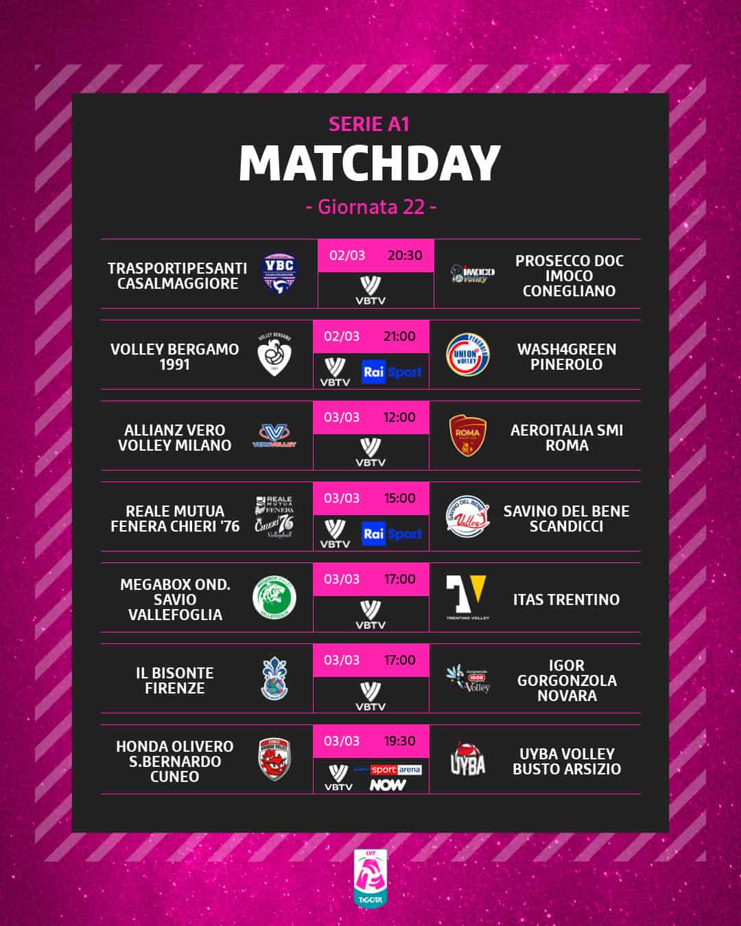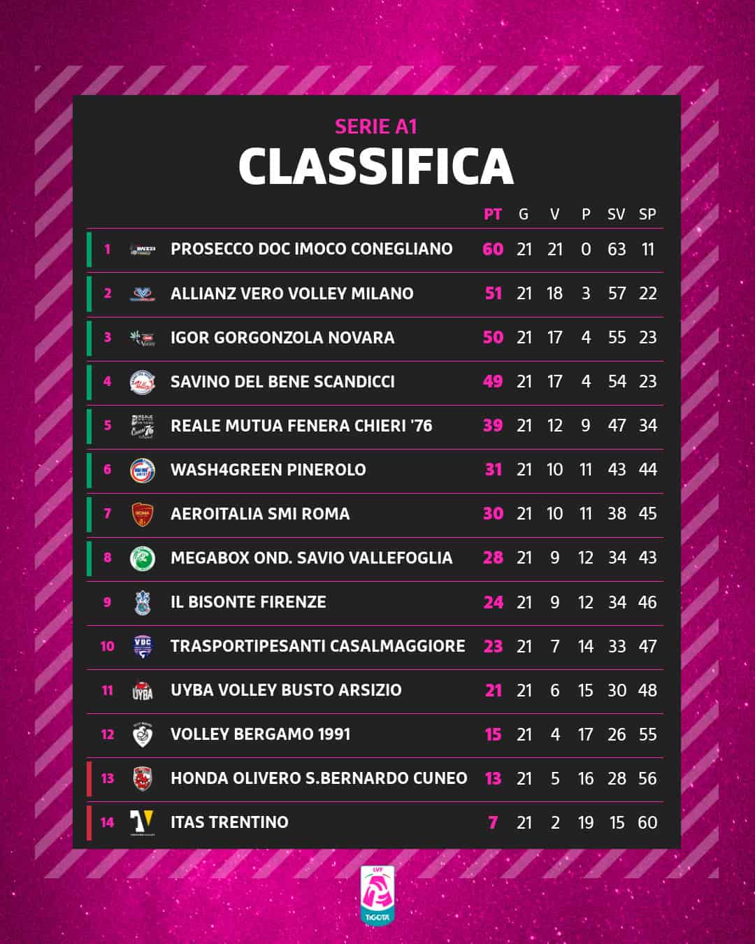 Sarà il ritorno del grande a Treviso di Lorenzo Bernardi (vice in provincia di Treviso), il famoso “Mister Secolo” – protagonista assoluto della Sisley – allenatore delle piemontesi che mercoledì ha vinto la Challenge Cup, primo trofeo della sua carriera da allenatore: dopo Scandicci e Chieri, per il terzo anno consecutivo la Serie A si prende la Coppa grazie all’Igor Gorgonzola Novara.