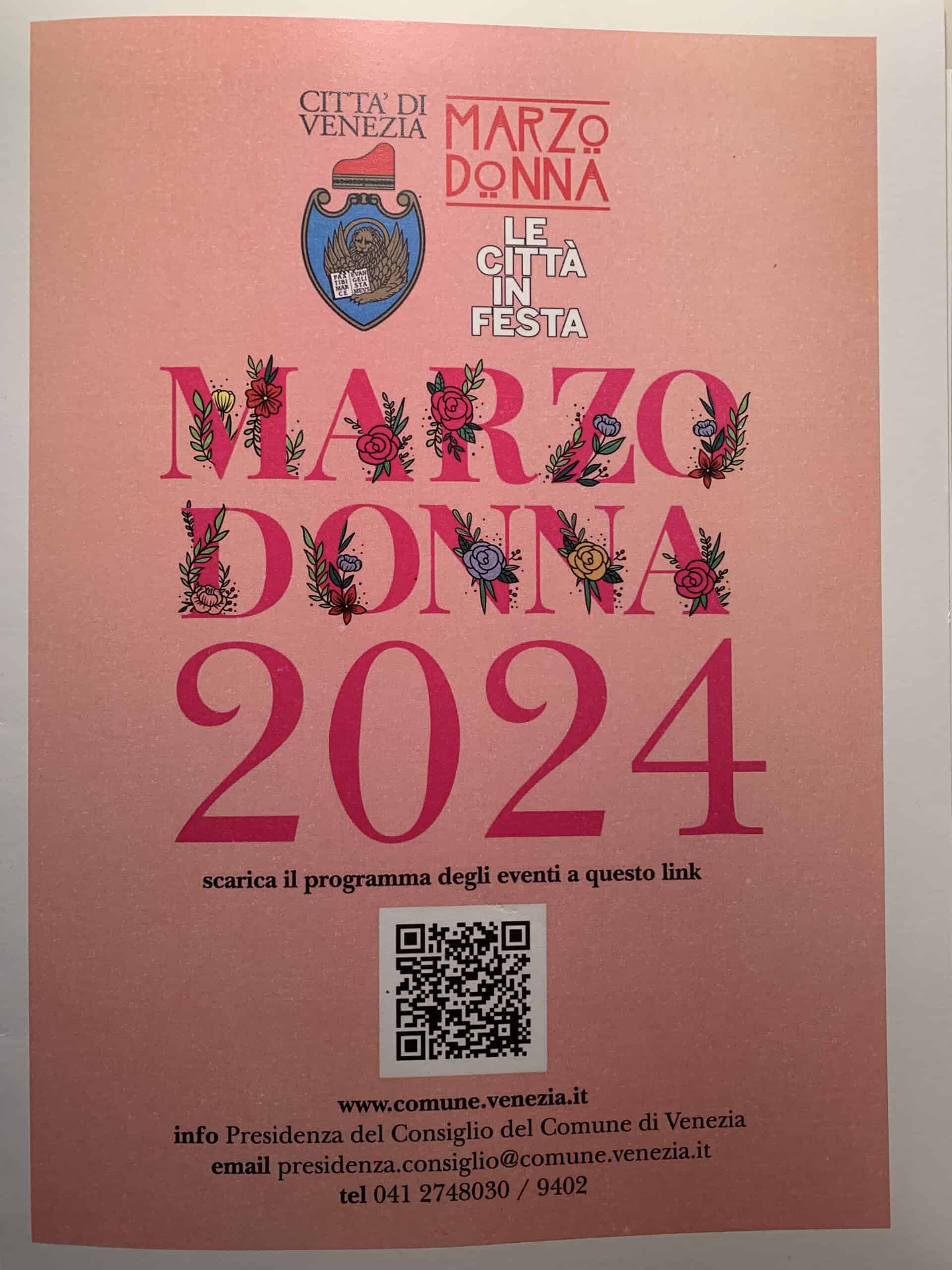 Oltre un centinaio gli eventi, impossibile elencarli tutti, ma l’intero programma è scaricabile dal sito: www.culturavenezia.it, nella sezione dedicata a Marzo Donna 2024.