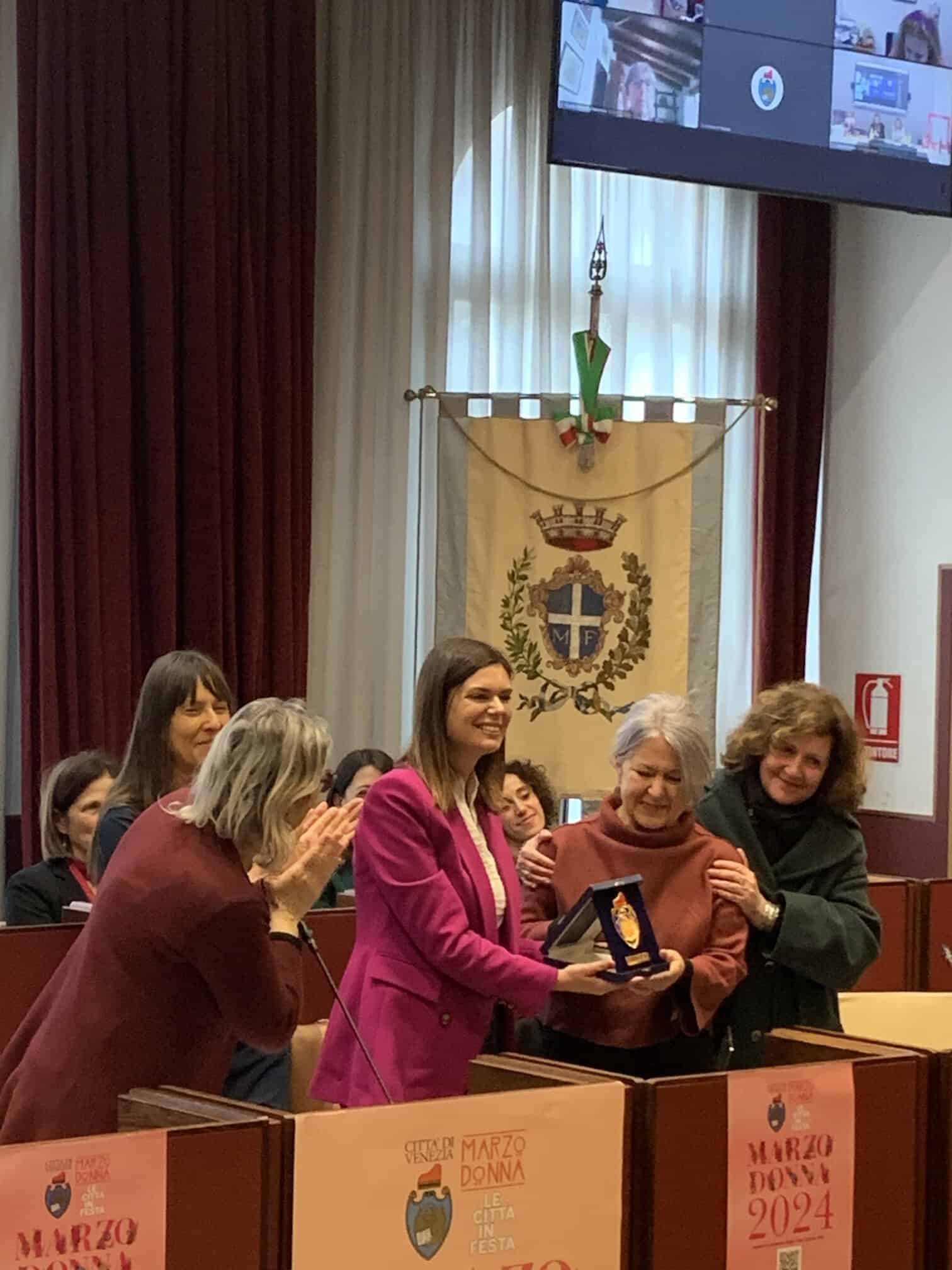 Patrizia Marcuzzo, del Centro Antiviolenza del Comune di Venezia – il primo in Italia ad essere stato creato – ha ricordato l’importante appuntamento che celebrerà i trent’anni dalla sua istituzione. A questo proposito il Comune ha colto l’occasione per consegnare una targa all’architetta Katja Musig che ha progettato gratuitamente l’arredamento della nuova casa rifugio per donne vittime di violenza domestica, con l’intento di portare bellezza all’interno della struttura.