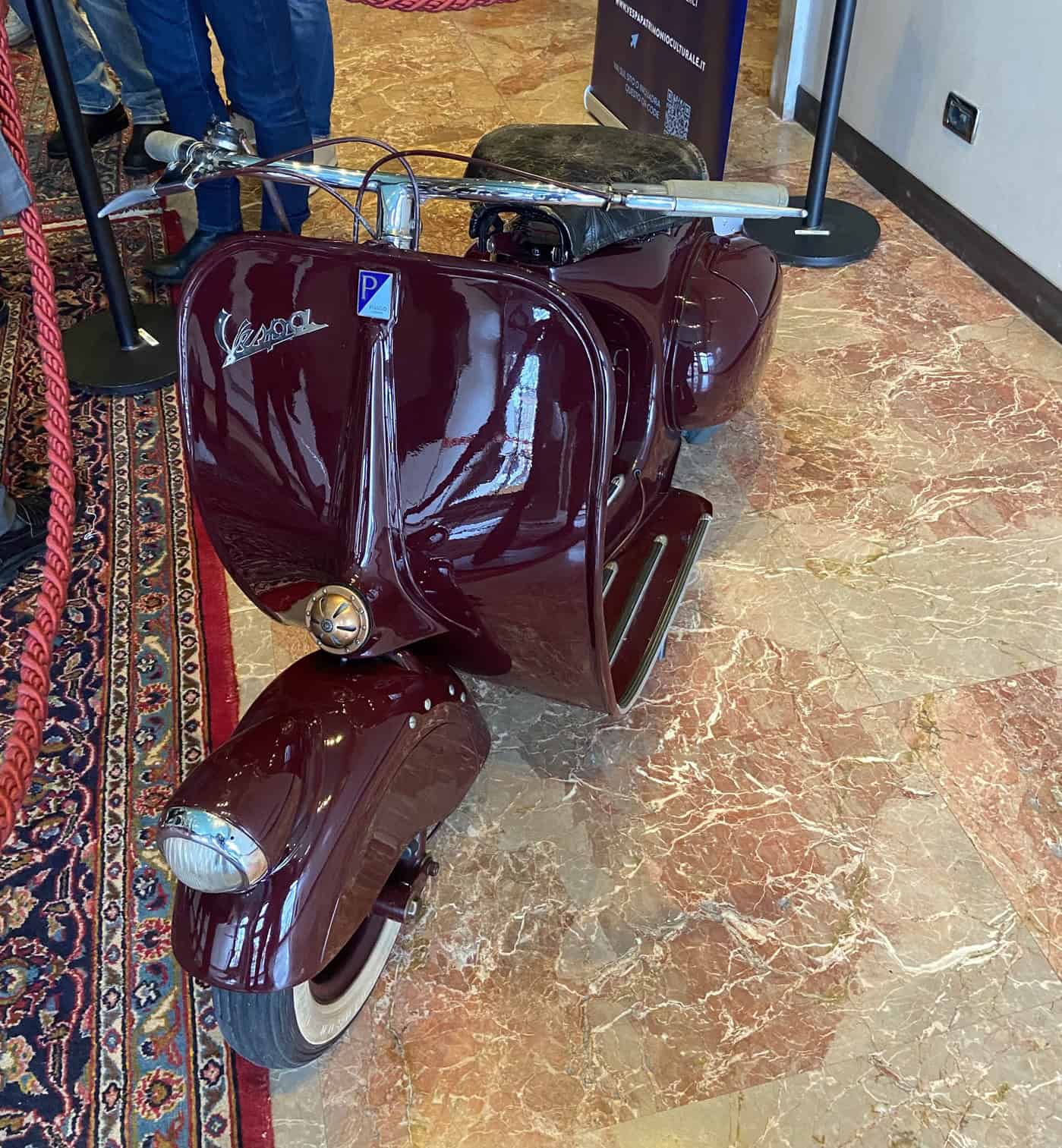 E una Vespa storica, la Vespa 98 di colore bordò, appartenuta all’arcivescovo di Pisa Ugo Camozzo regalatagli dalla Piaggio, e ora di proprietà del collezionista piacentino Roberto Donati, consigliere nazionale e Responsabile cultura Vespa Club d’Italia ha fatto il suo ingresso il 27 marzo, per festeggiare il compleanno, a Palazzo Ferro Fini a Venezia, nella sede del Consiglio regionale del Veneto, dove ha fatto bella mostra si sé, tra la curiosità e l’entusiasmo dei Consiglieri regionali, vespisti e non, e innumerevoli scatti fotografici. Nell’occasione è stata presentata, in qualità di primo firmatario, dal Consigliere della Lega – Liga Veneta Giuseppe Pan la risoluzione da lui depositata per far riconoscere la Vespa “targa storica patrimonio culturale italiano”.