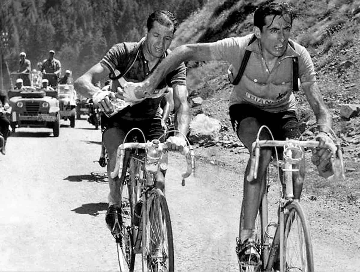 Il conflitto e l’impegno nella Resistenza avevano indebolito Bartali che dovette lottare per ritornare ad essere il campione di prima della guerra. Ma era pur sempre il campione, anche se all’orizzonte c’era ormai un avversario di tutto rispetto, un rivale sportivo eccezionale, il Campionissimo Fausto Coppi. Gino vinse il Giro d’Italia nel 1946 e, con una prestazione straordinarie sulle montagne francesi, anche il Tour del 1948, dieci anni dopo la sua prima vittoria. Anche i campioni hanno un nemico: la vecchiaia e il vecchio Gino seppe tenere per sé tutti i suoi segreti. Era umile, tanto espansivo nel parlare di ciclismo nei suoi commenti al Giro d’Italia, polemico e caustico da finire sempre i suoi interventi con “l’è tutto sbagliato, l’è tutto da rifare”. E contemporaneamente tanto taciturno da conservare per sempre il segreto delle sue imprese non sportive.
